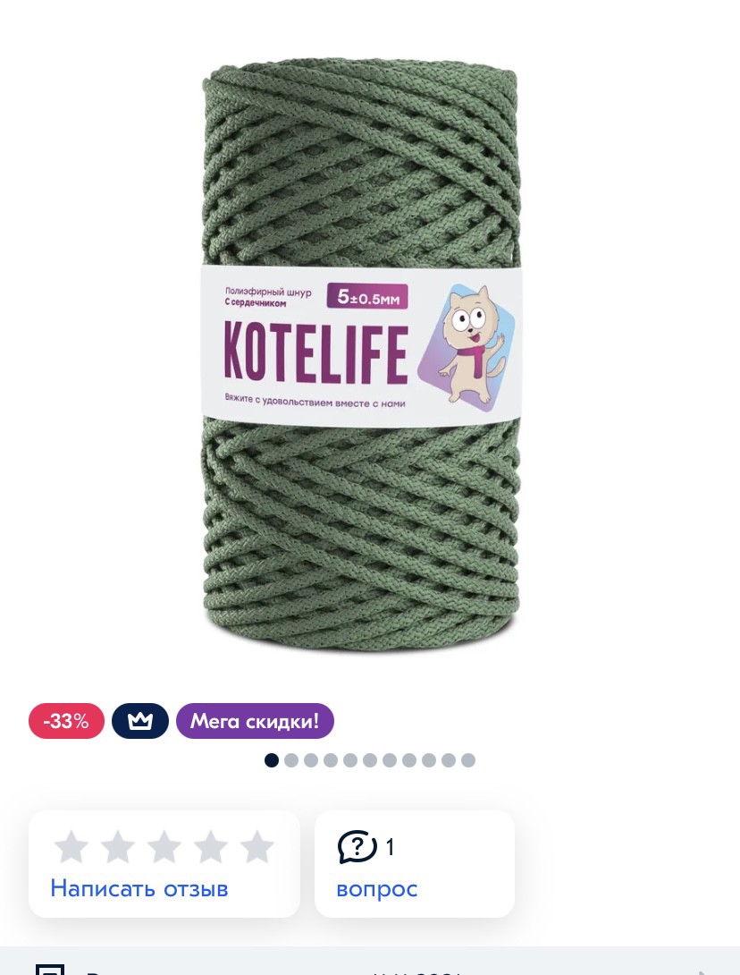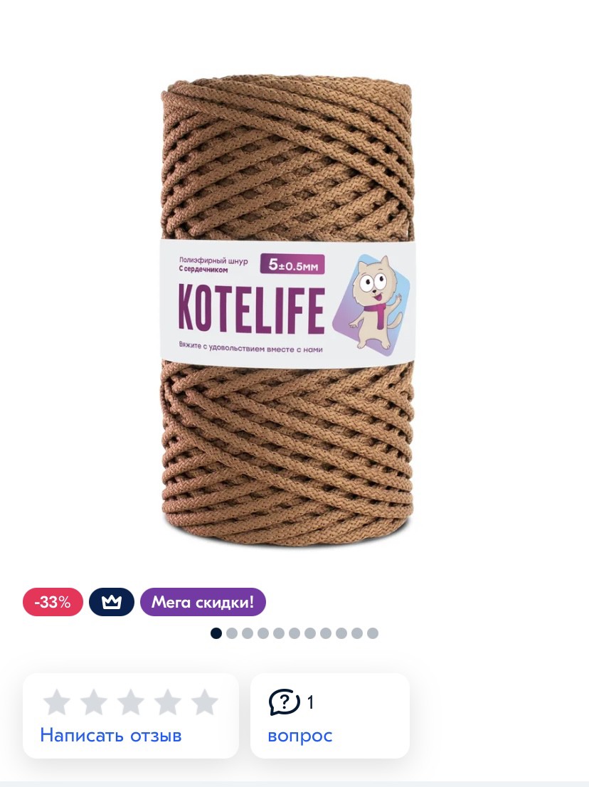 Трикотажная пряжа KOTELIFE, 100% хлопок, 7-9мм, 100м, цвет Коричневый