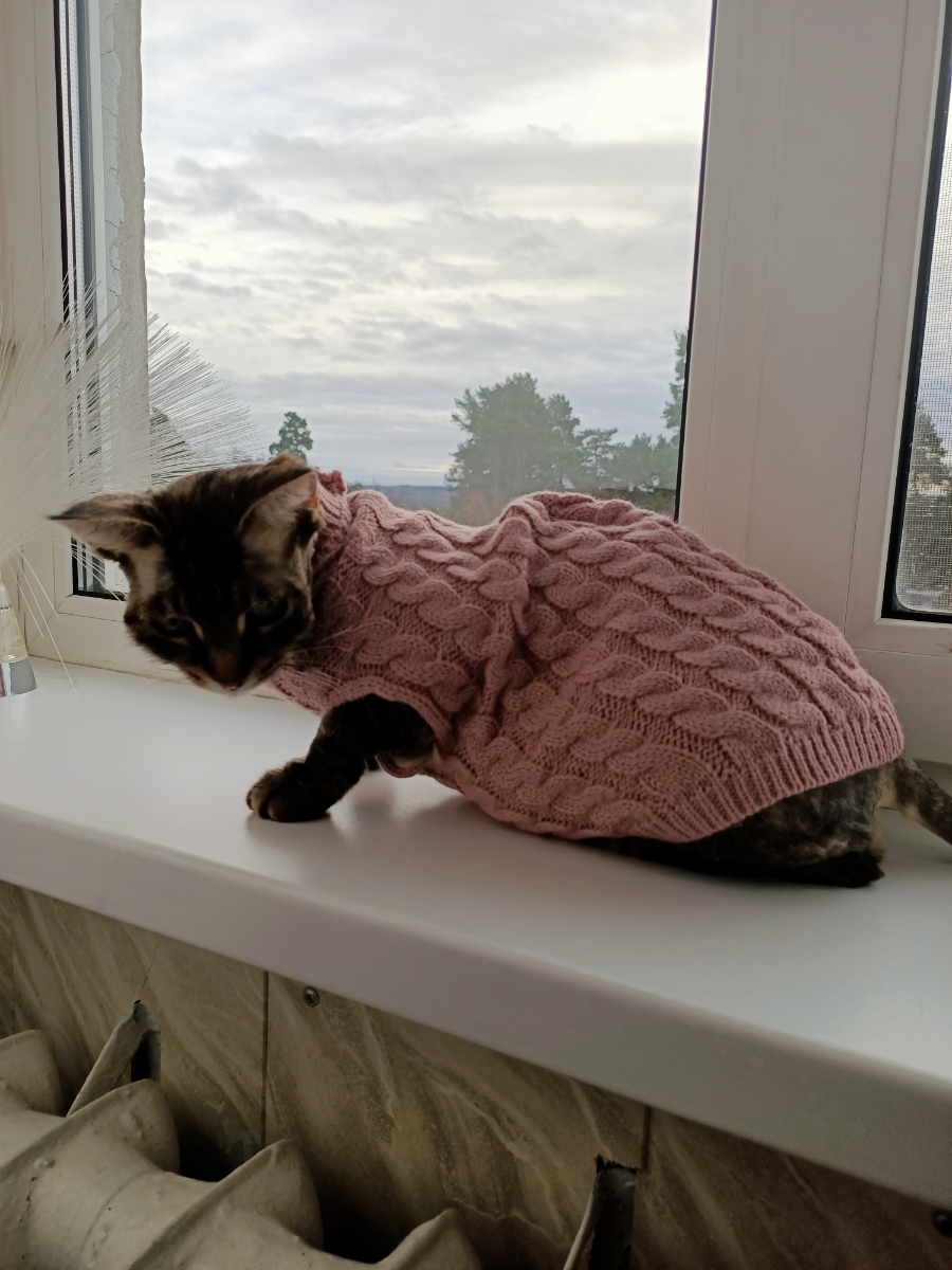 Свитер вязаный с косами для кошек и собак мелких и средних пород/пудровый/XL