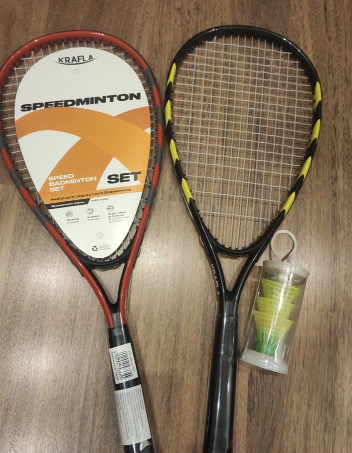 Набор для спидминтона KRAFLA S-SP500: ракетка (2шт), волан (3шт), чехол