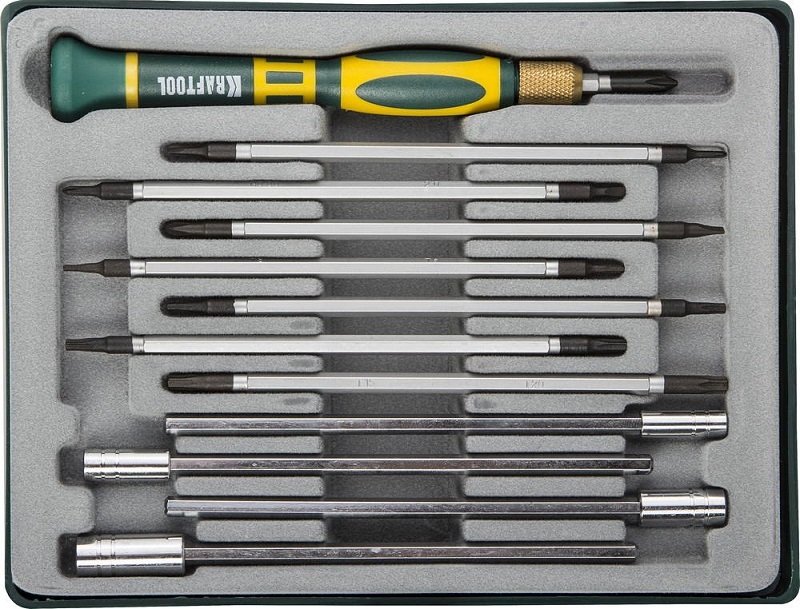 Precision-20 отвертка для точных работ со сменными стержнями и головками 12 предм., KRAFTOOL