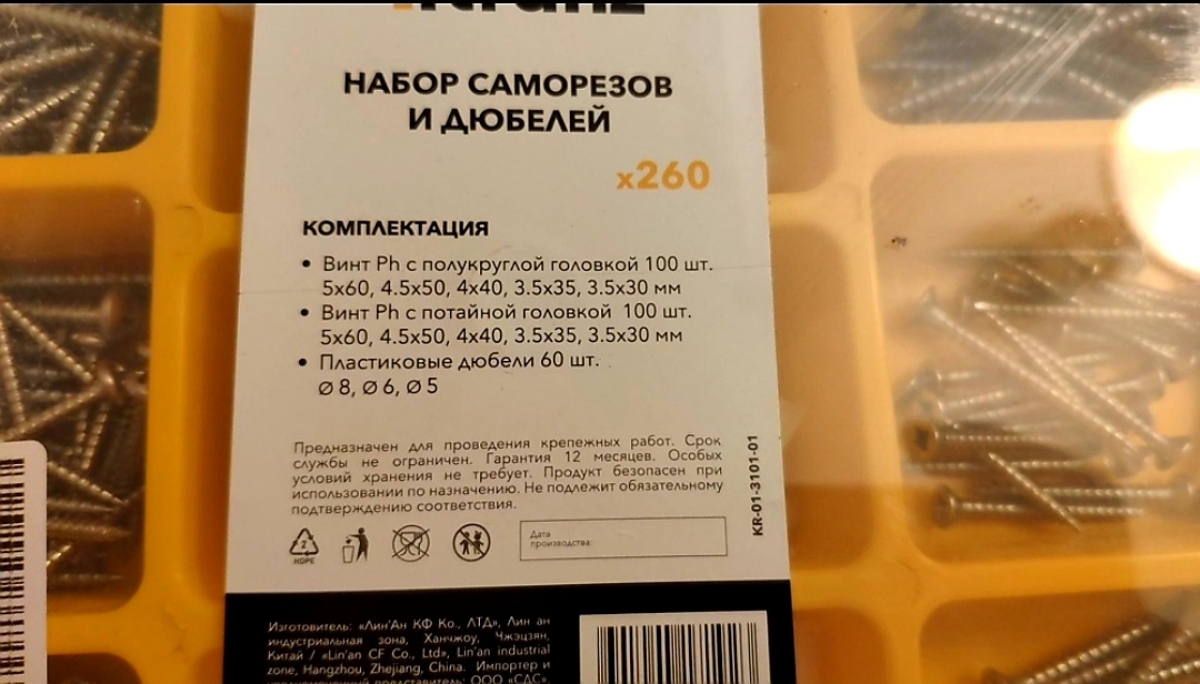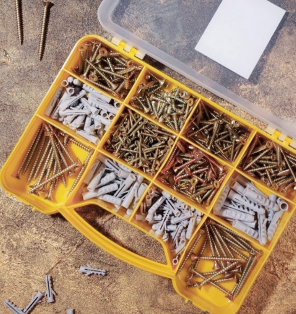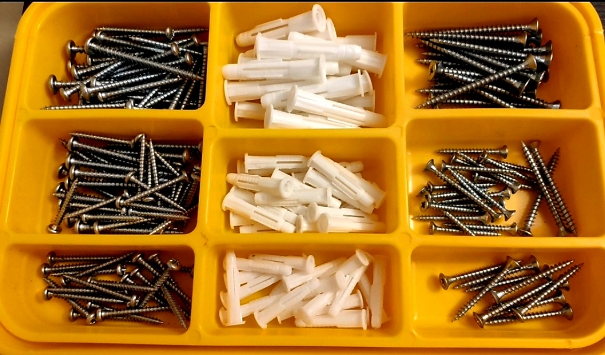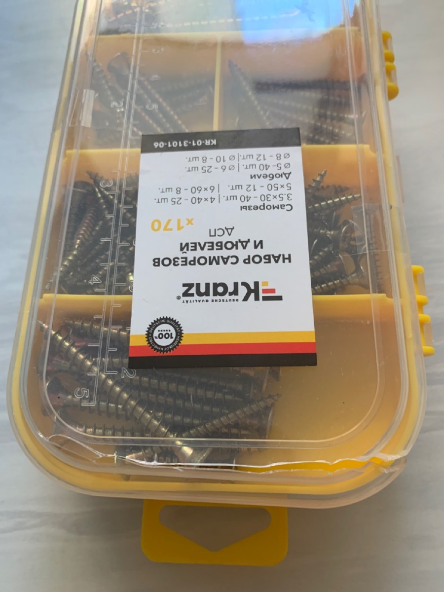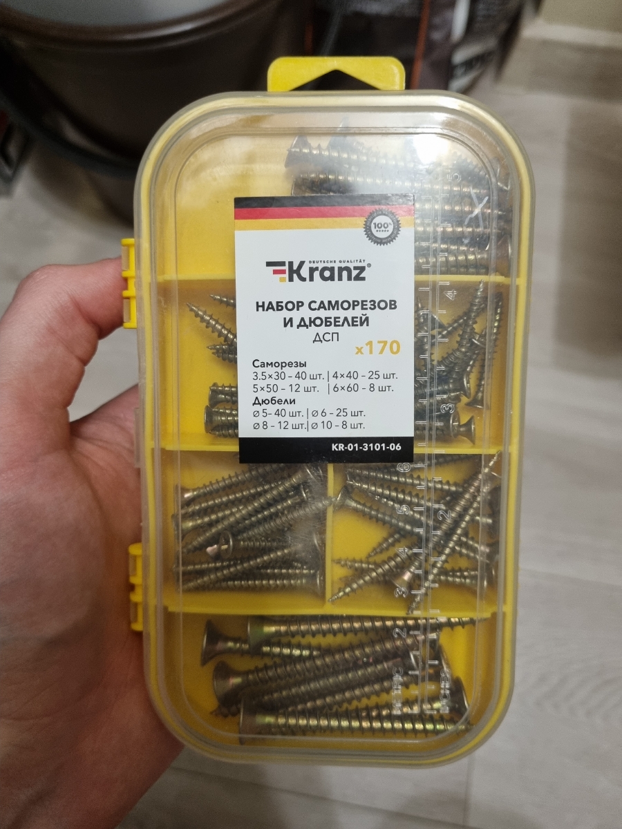 Набор дюбелей и оцинкованных саморезов Kranz для ДСП в кейсе, 170 шт