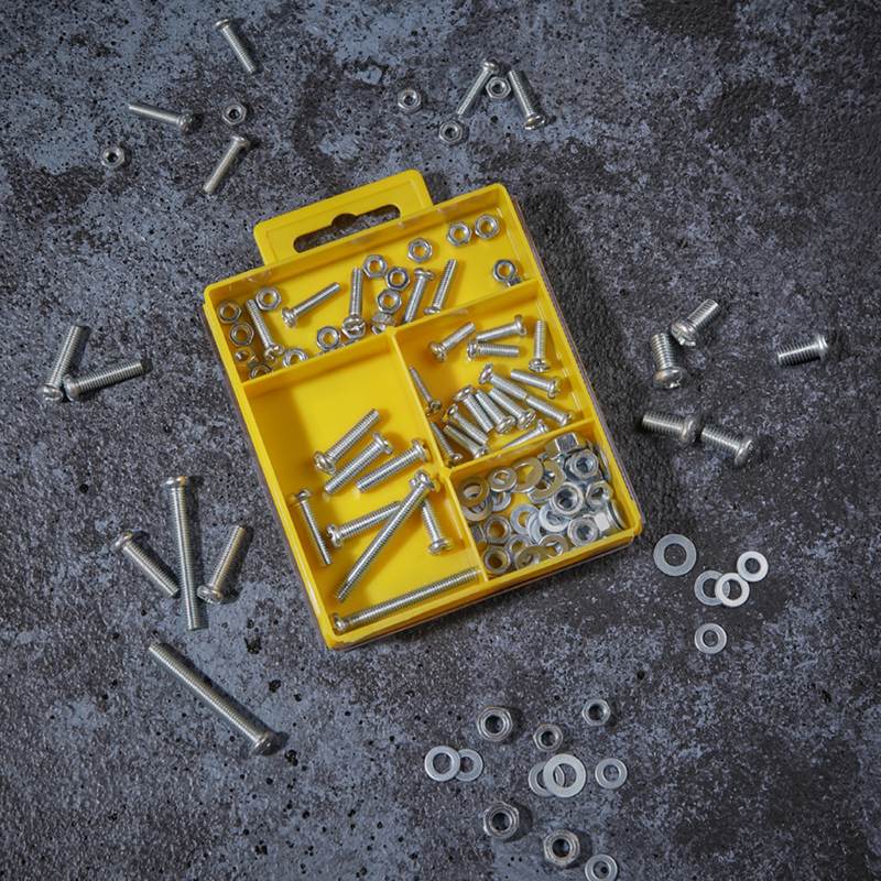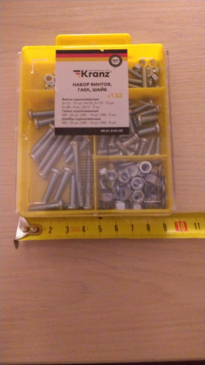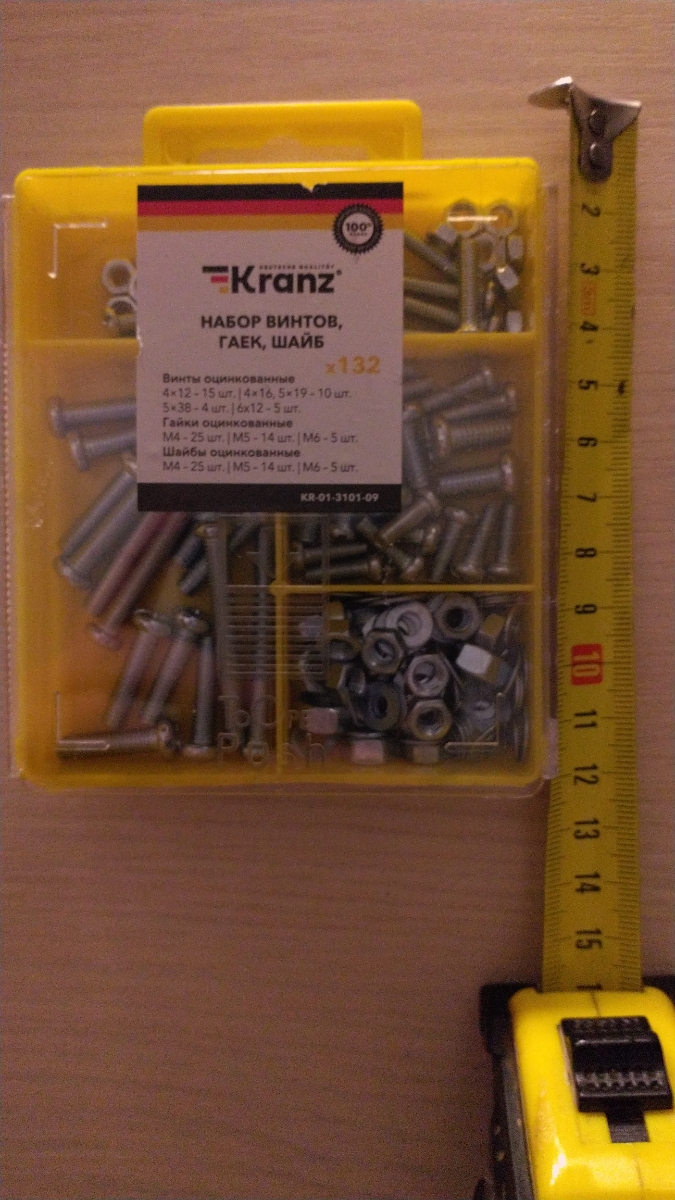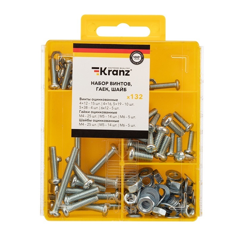 Набор оцинкованных винтов, гаек и шайб Kranz в кейсе, 132 шт