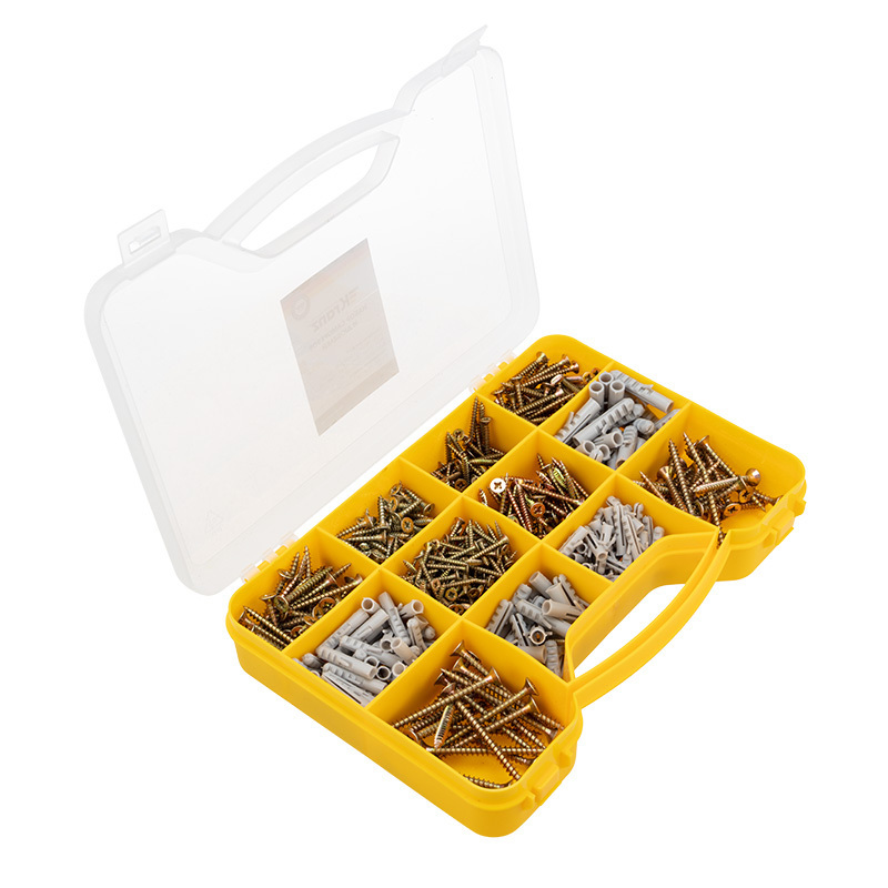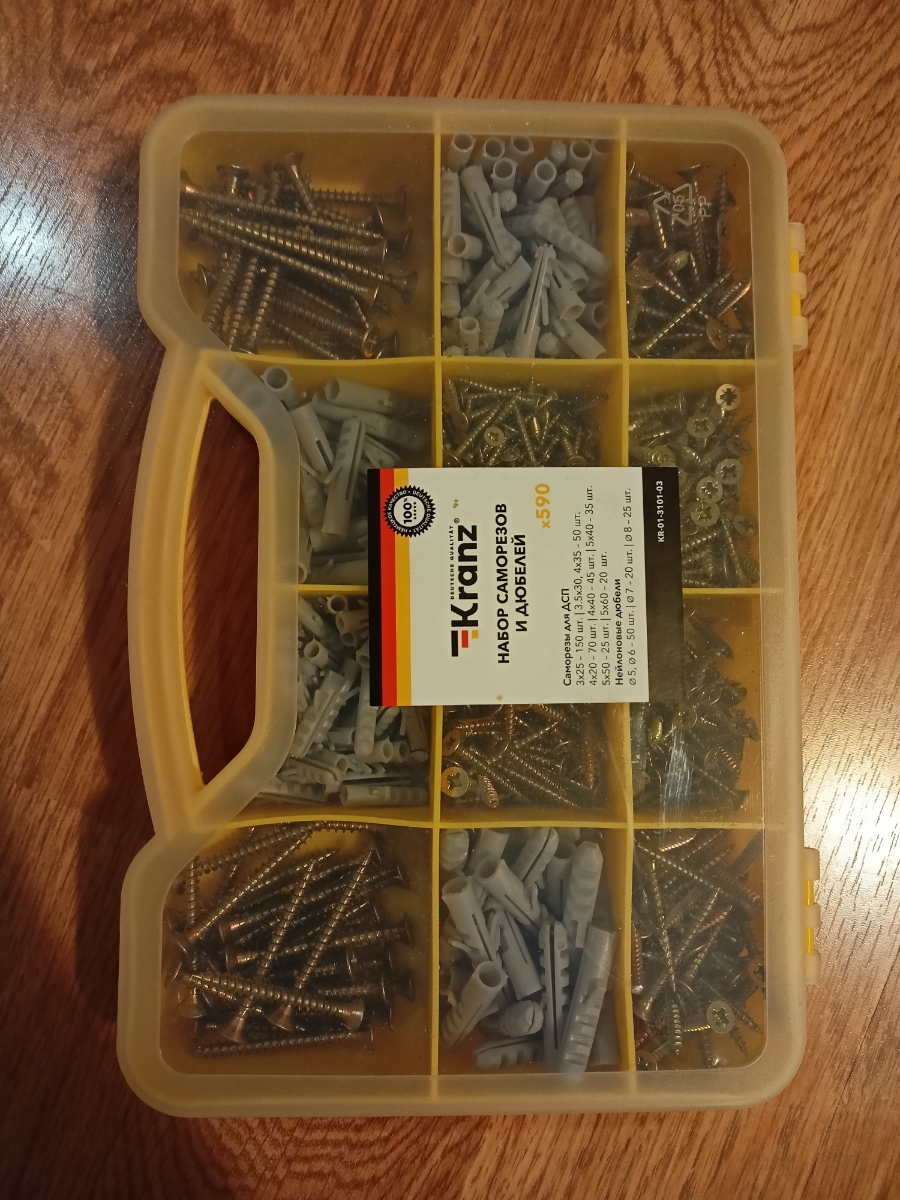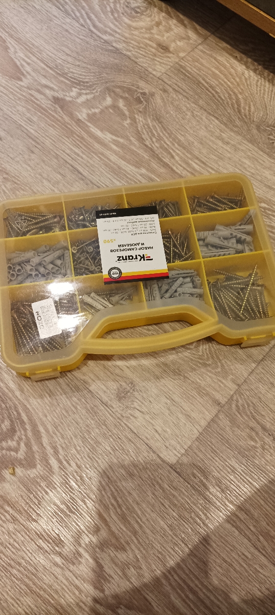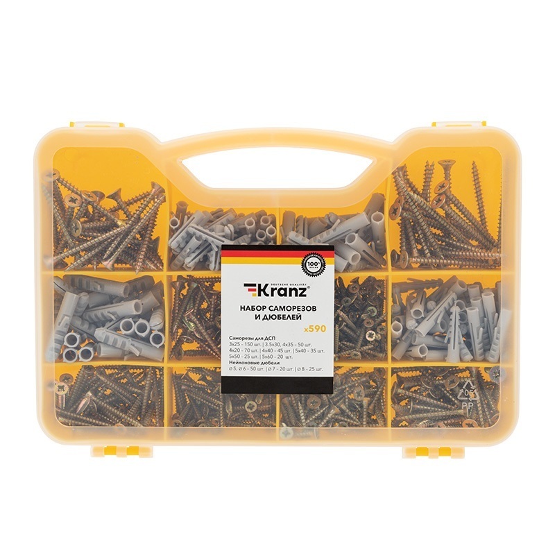 Набор дюбелей и оцинкованных саморезов Kranz в кейсе, 590 шт