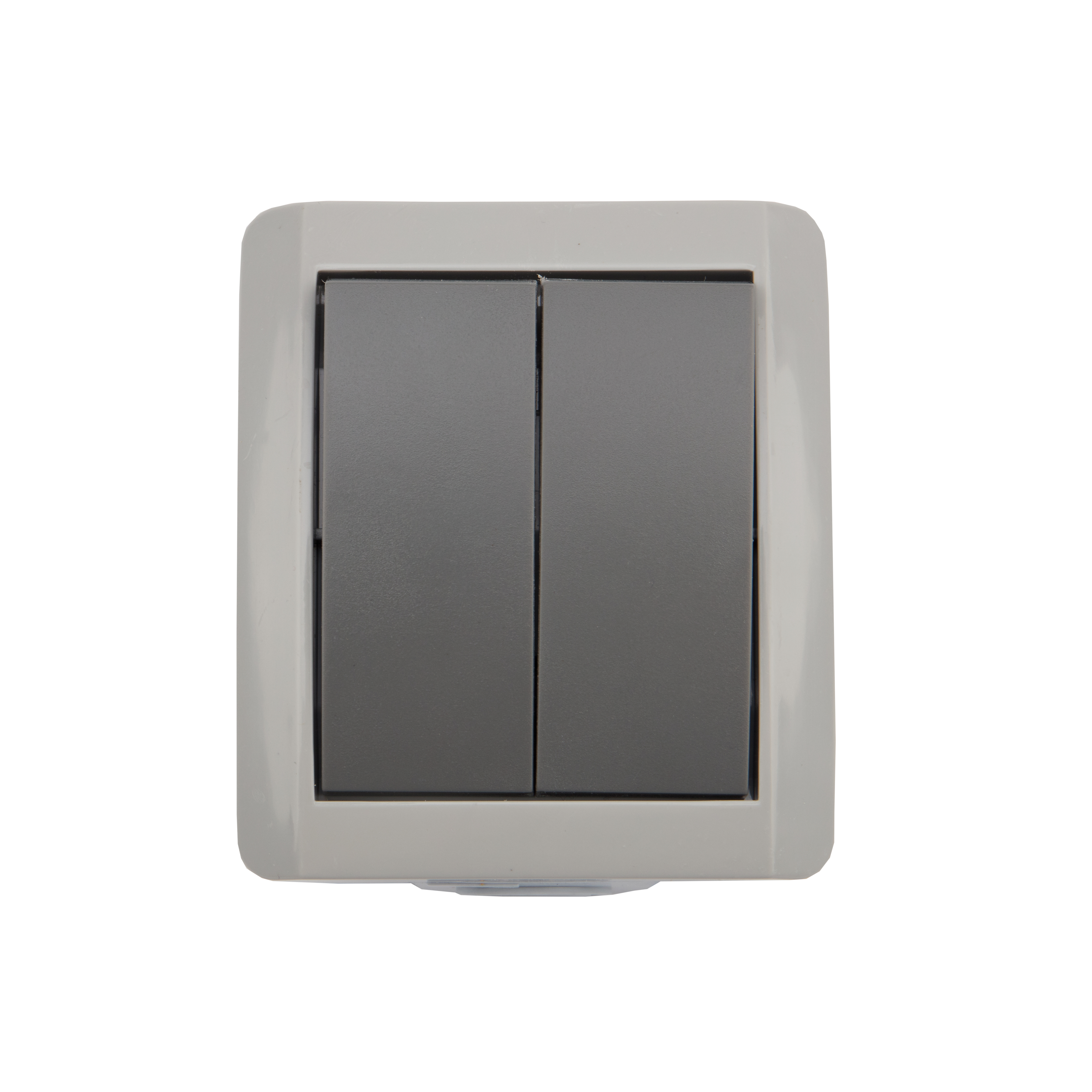 Выключатель влагозащищенный двухклавишный KRANZ открытой установки, 250 В/10 А