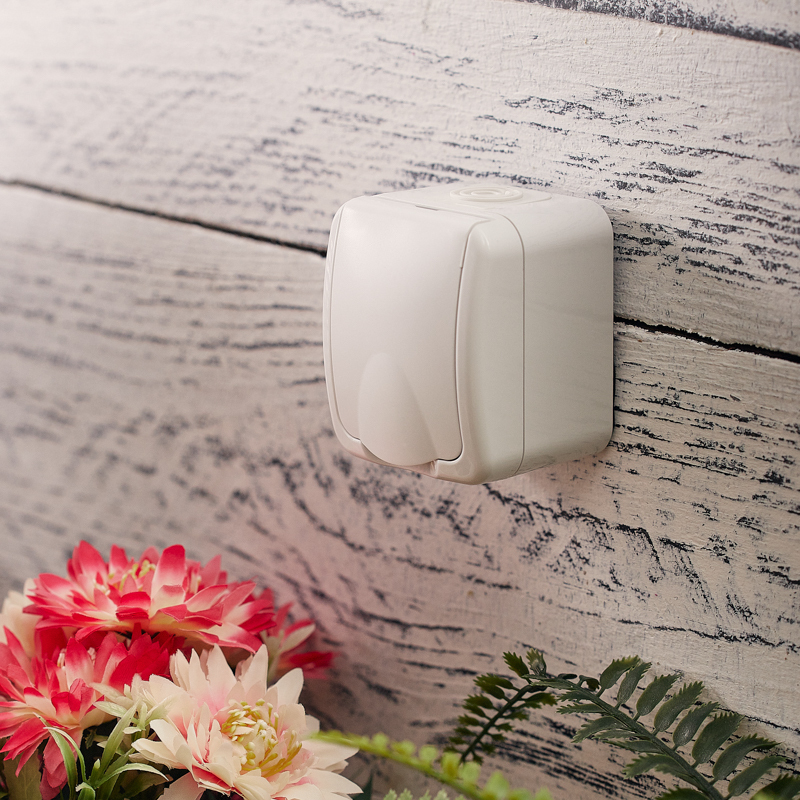 Розетка влагозащищенная одноместная KRANZ открытой установки с заземлением, 250 В/16 А