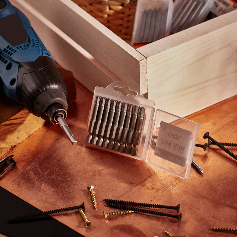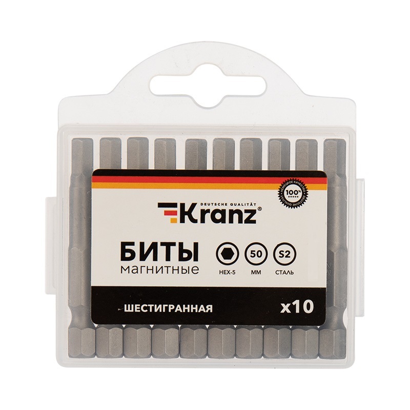 Оснастка KRANZ стальная шестигранная HEX-5х50 мм для шуруповерта, 10 штук в коробке