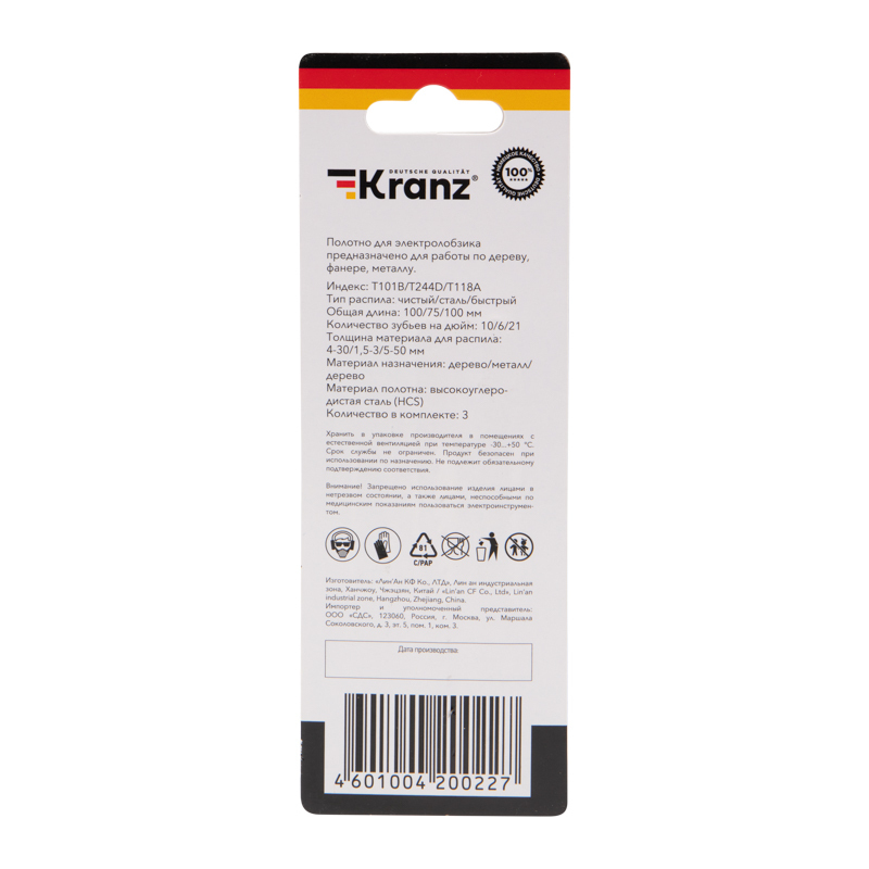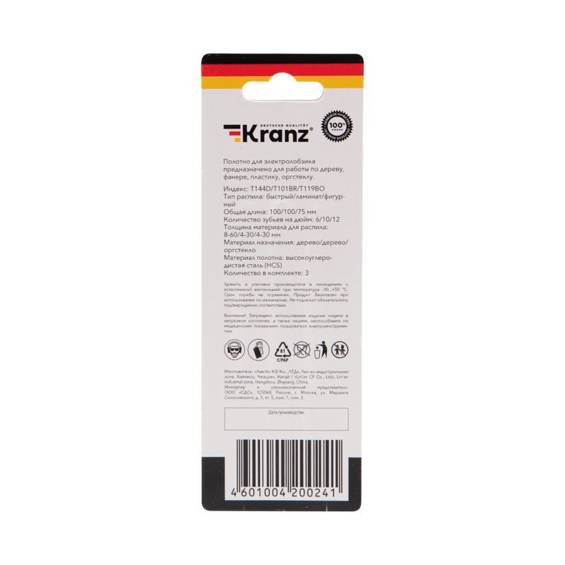 Полотно Kranz T-тип 100 мм, шаг 2.5 мм, 2/1.6 мм 3 шт. 3 шт.