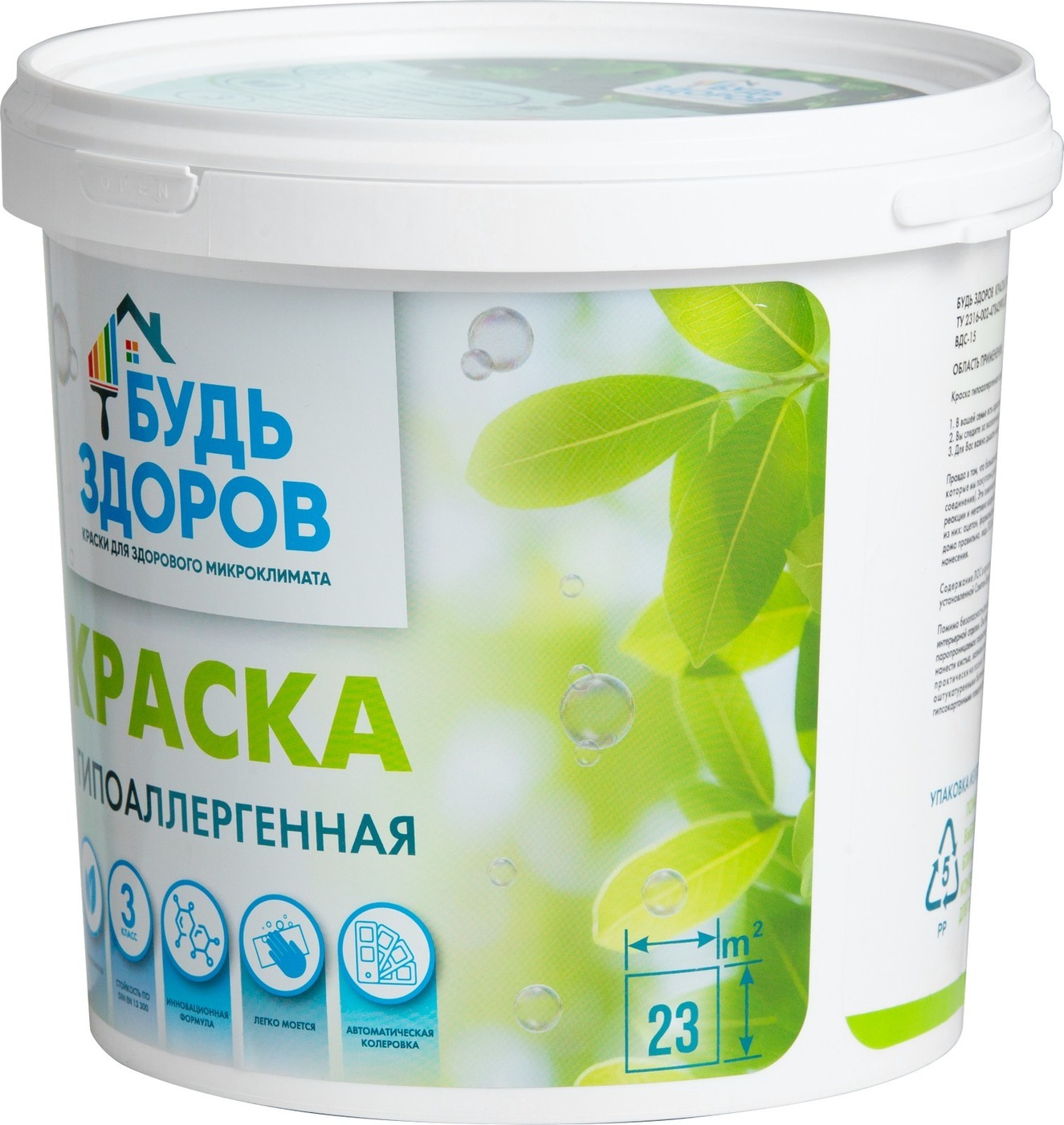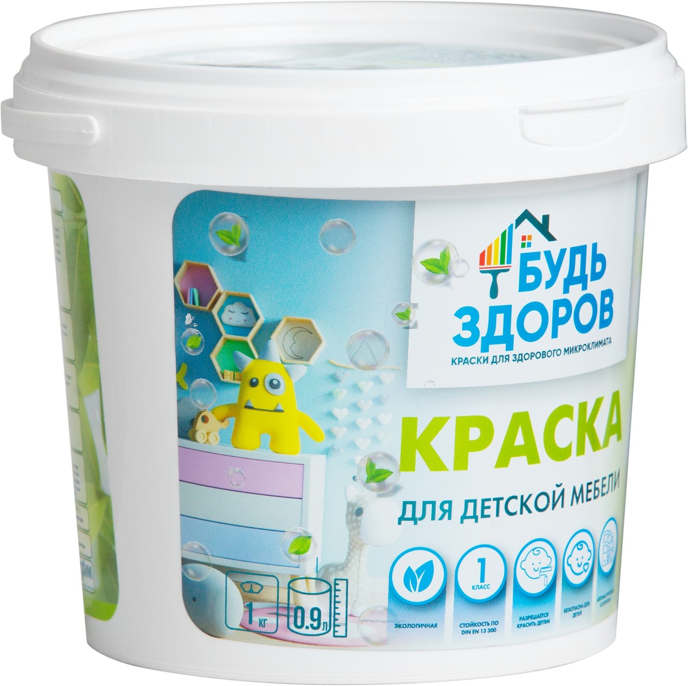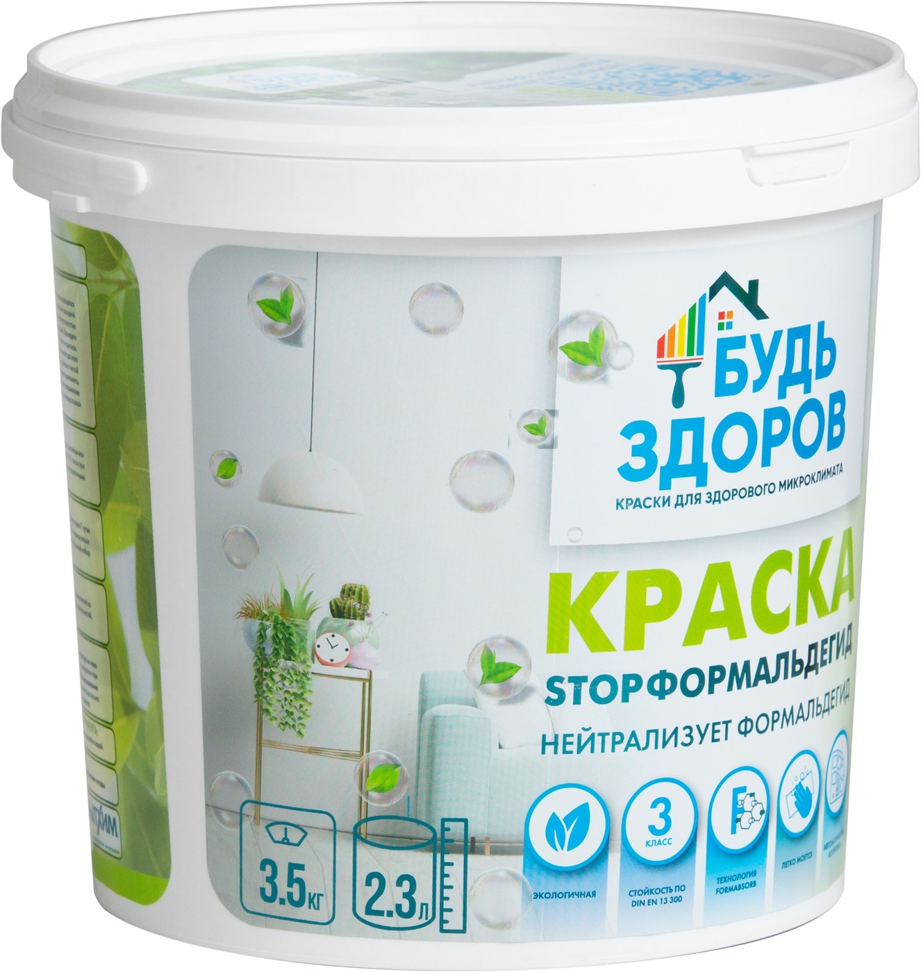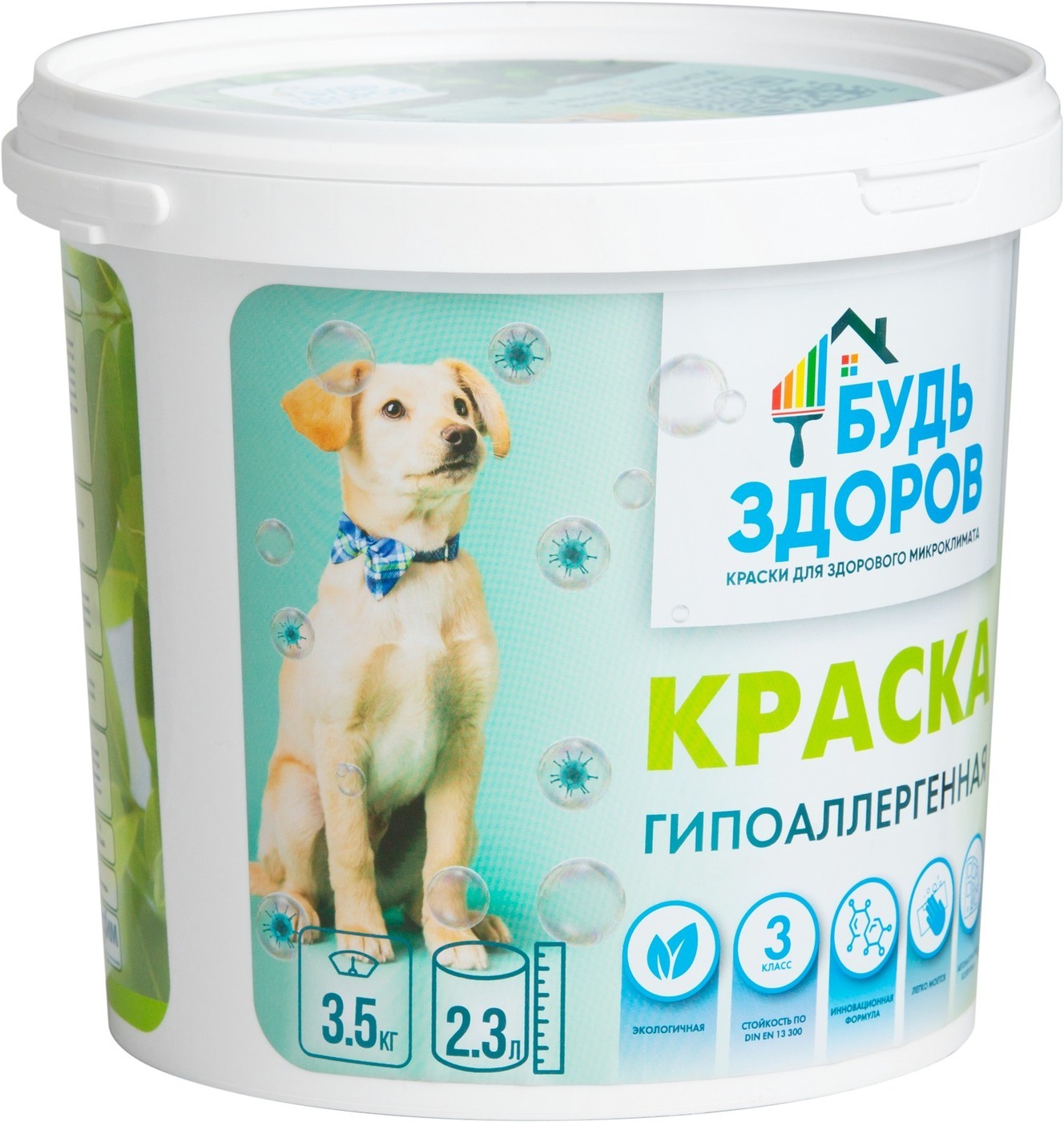 Краска Краски Будь Здоров гипоаллергенная Быстросохнущая, Матовое покрытие, 2,3 л, белый