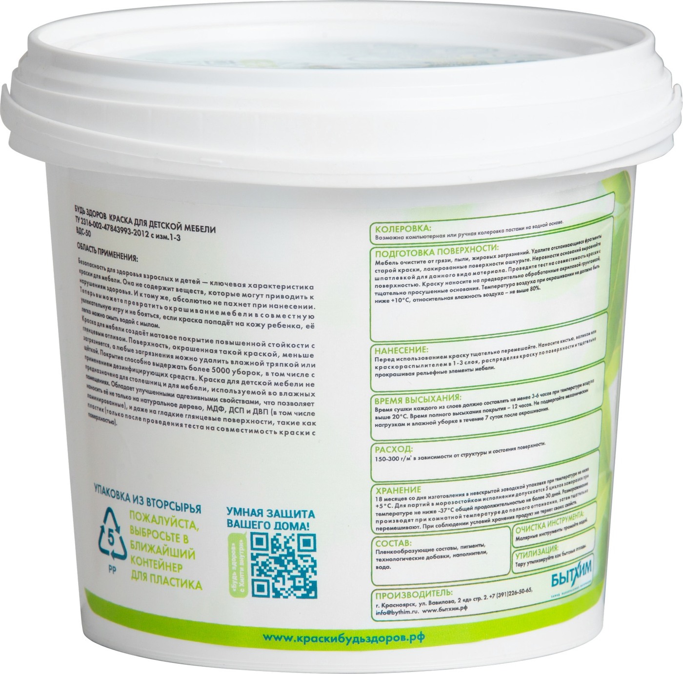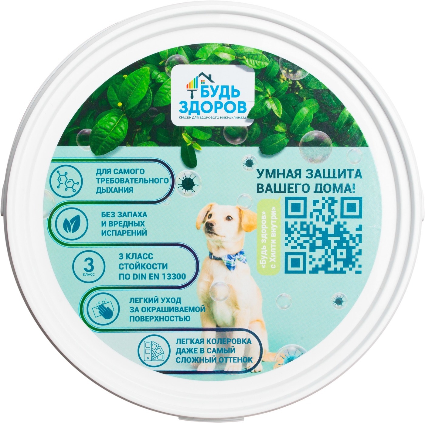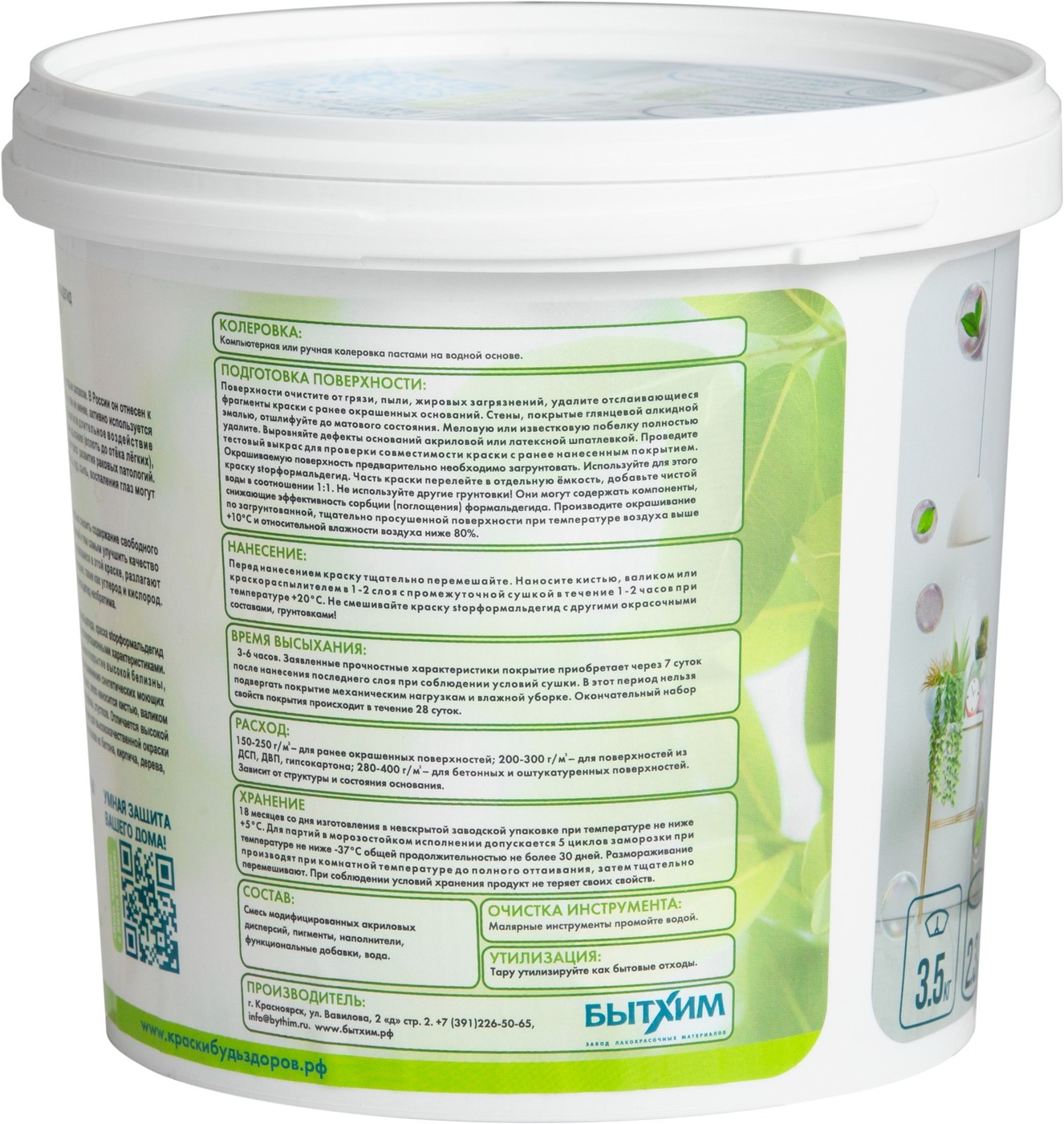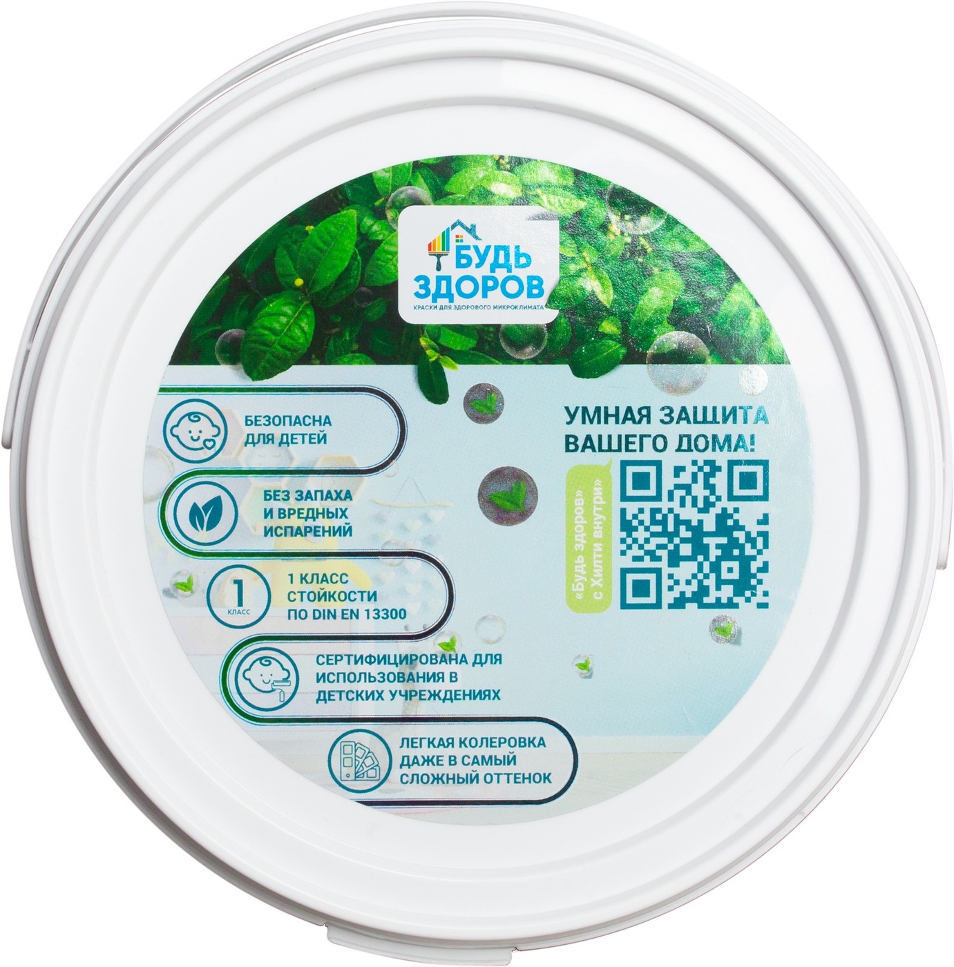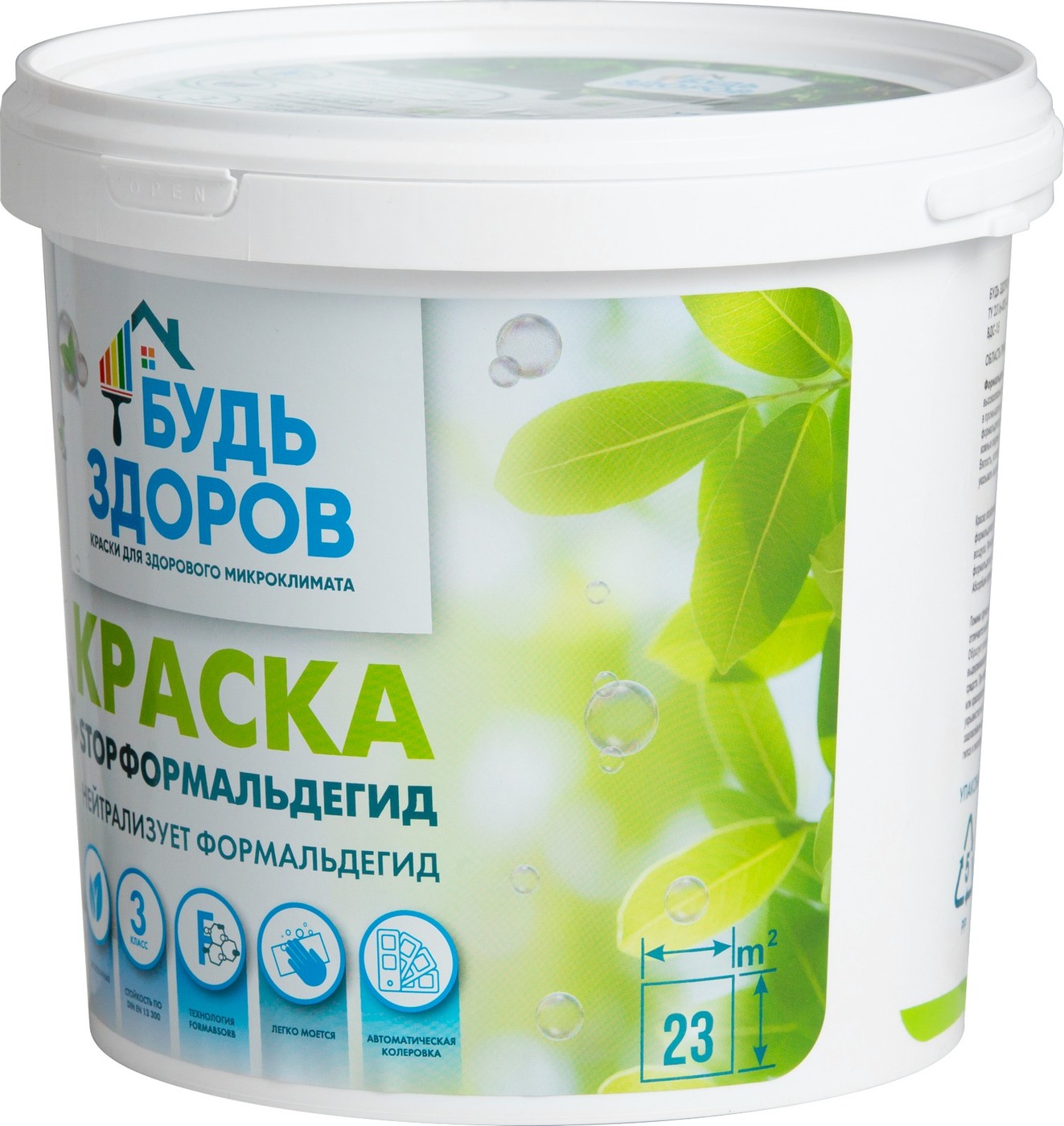 Краска Краски Будь Здоров гипоаллергенная Быстросохнущая, Матовое покрытие, 2,3 л, белый