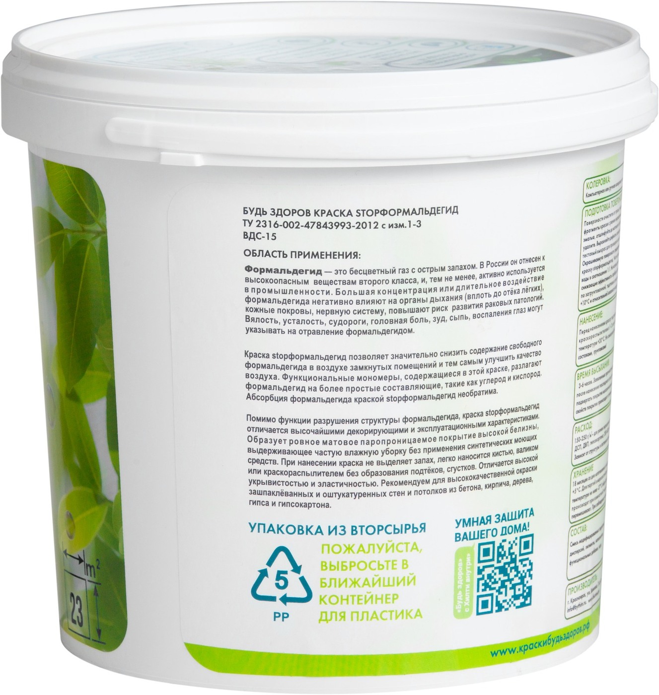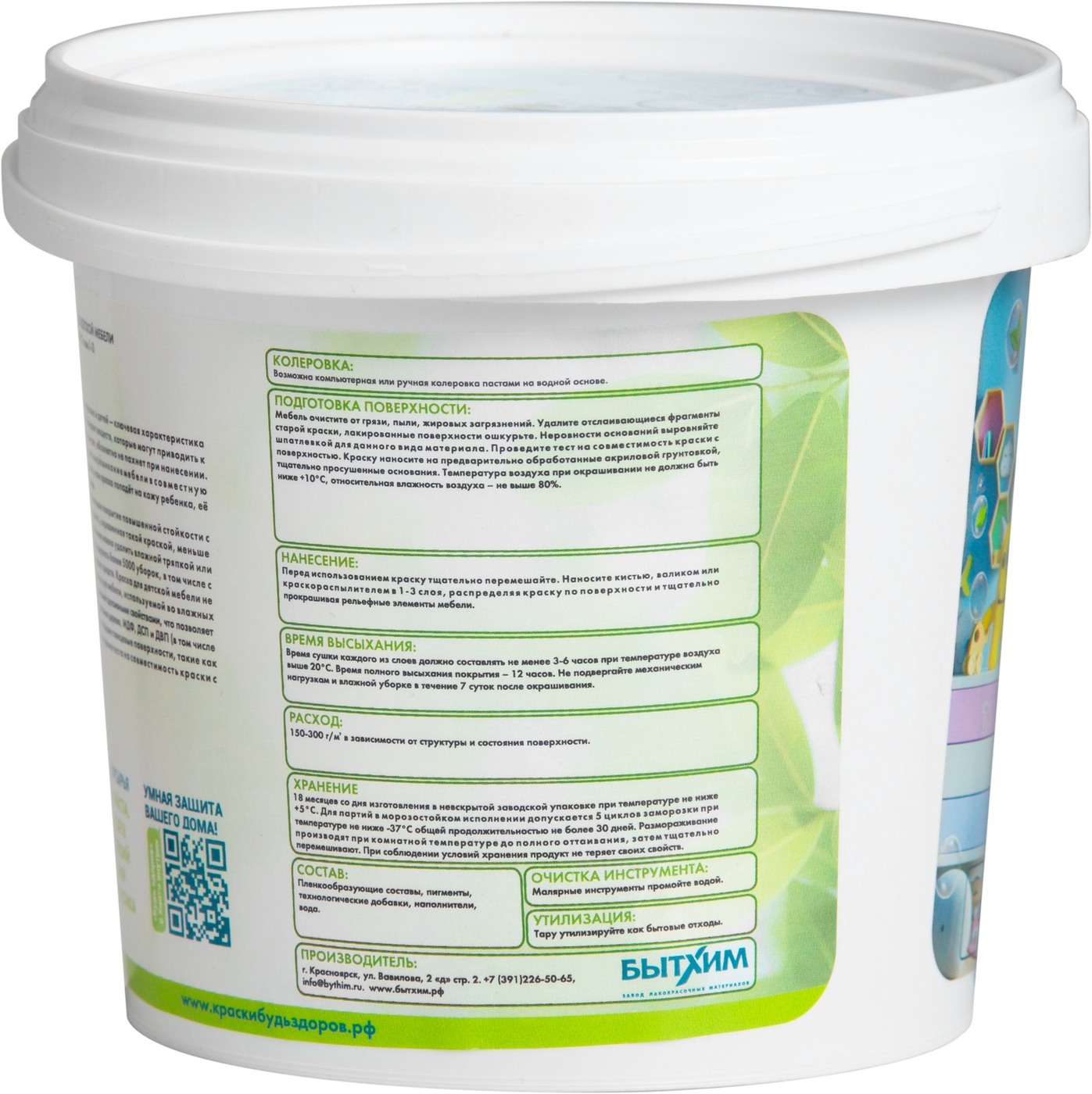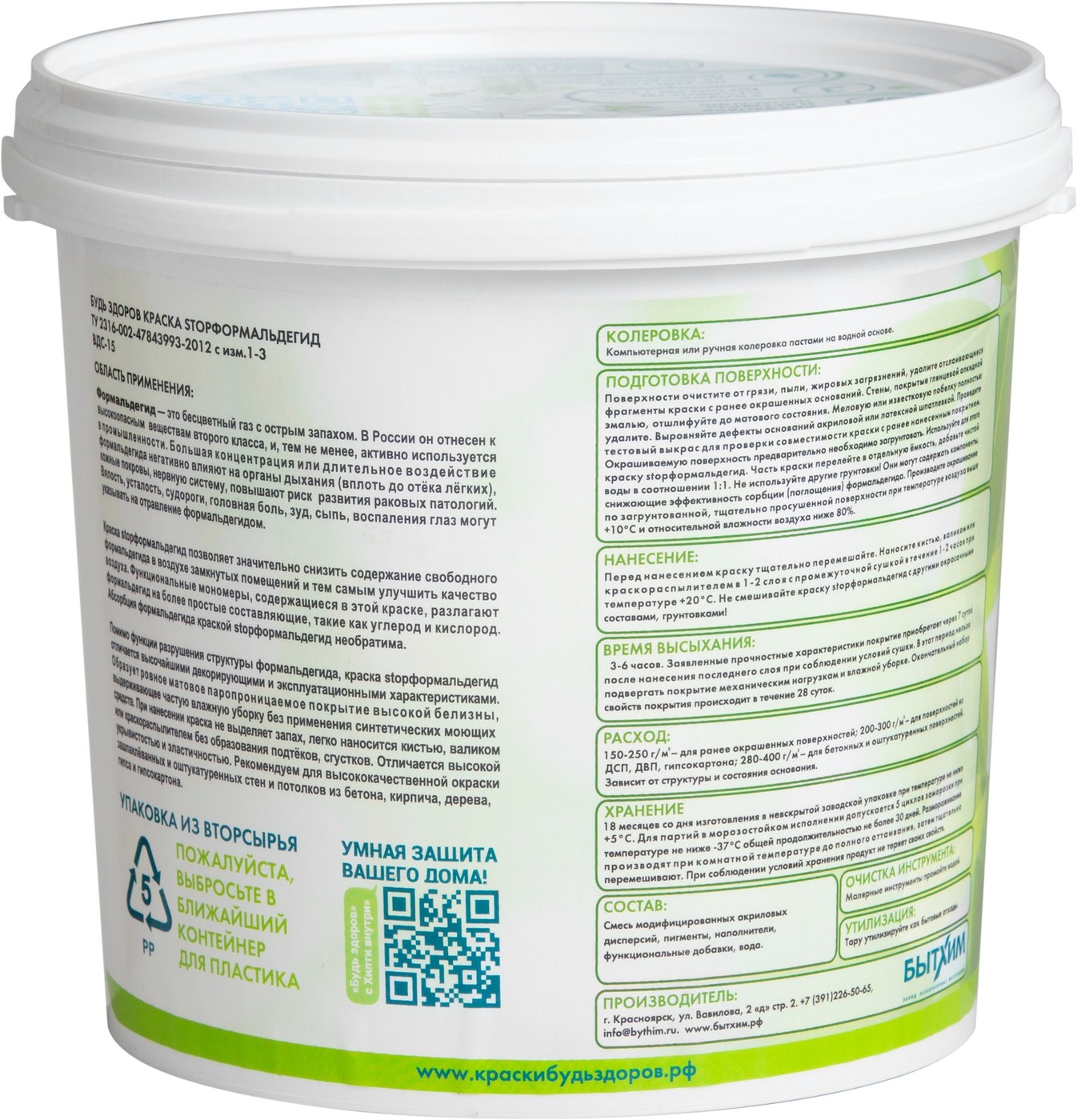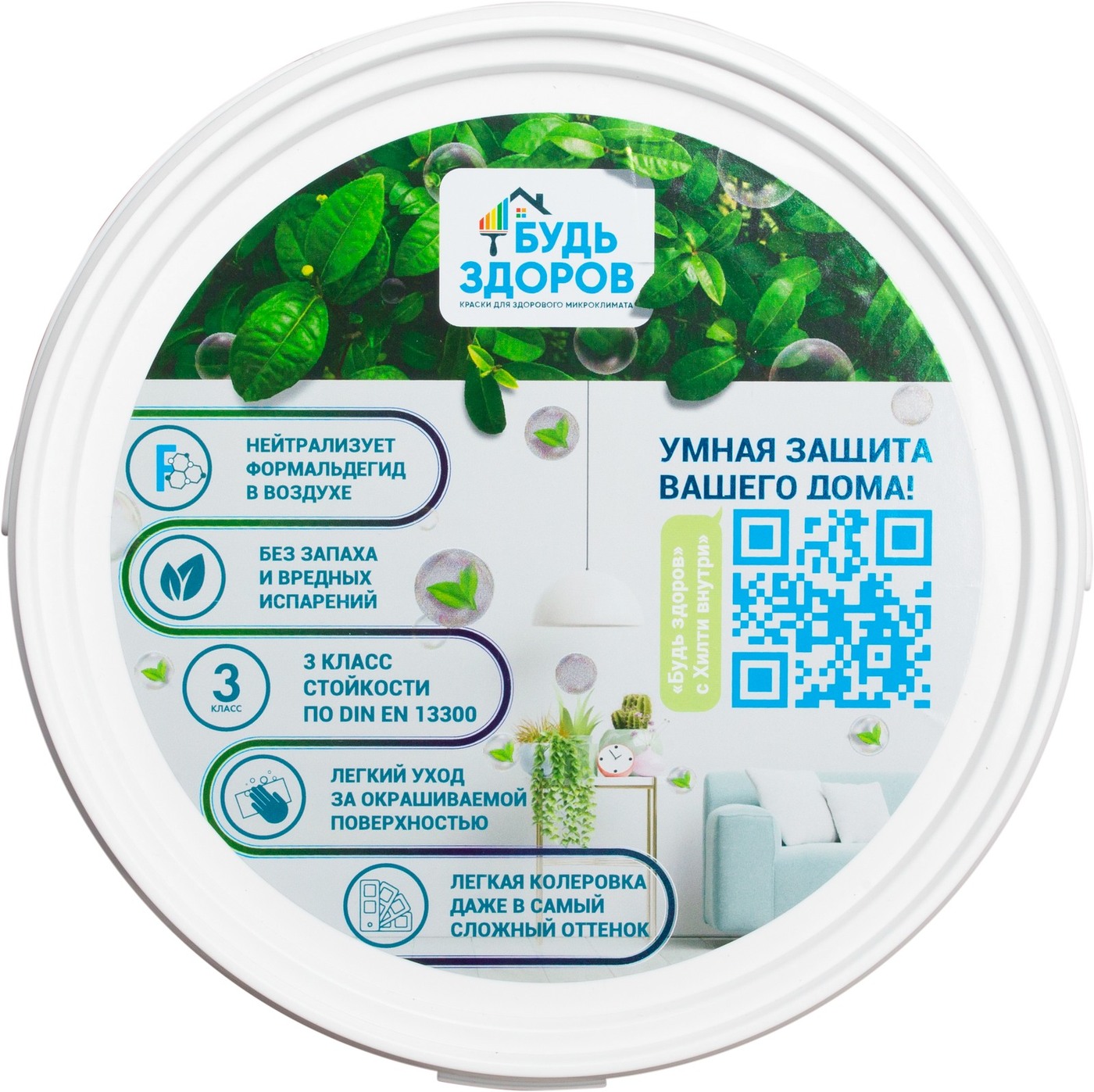 Краска Краски Будь Здоров гипоаллергенная Быстросохнущая, Матовое покрытие, 2,3 л, белый