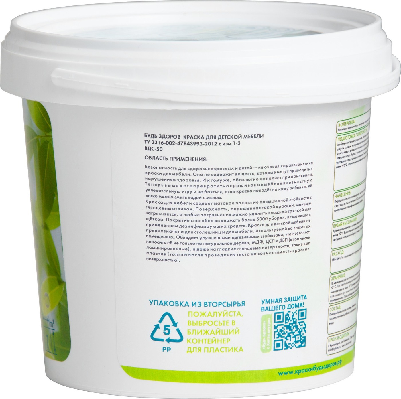 Краска Краски Будь Здоров ВДС-50 Гладкая, Быстросохнущая, Глянцевое покрытие, 0.9 л, 1 кг, белый