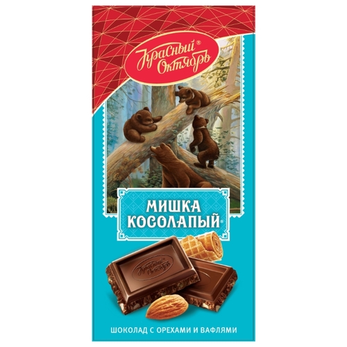 Шоколад Красный Октябрь "Мишка косолапый" темный с миндалем и вафельной крошкой