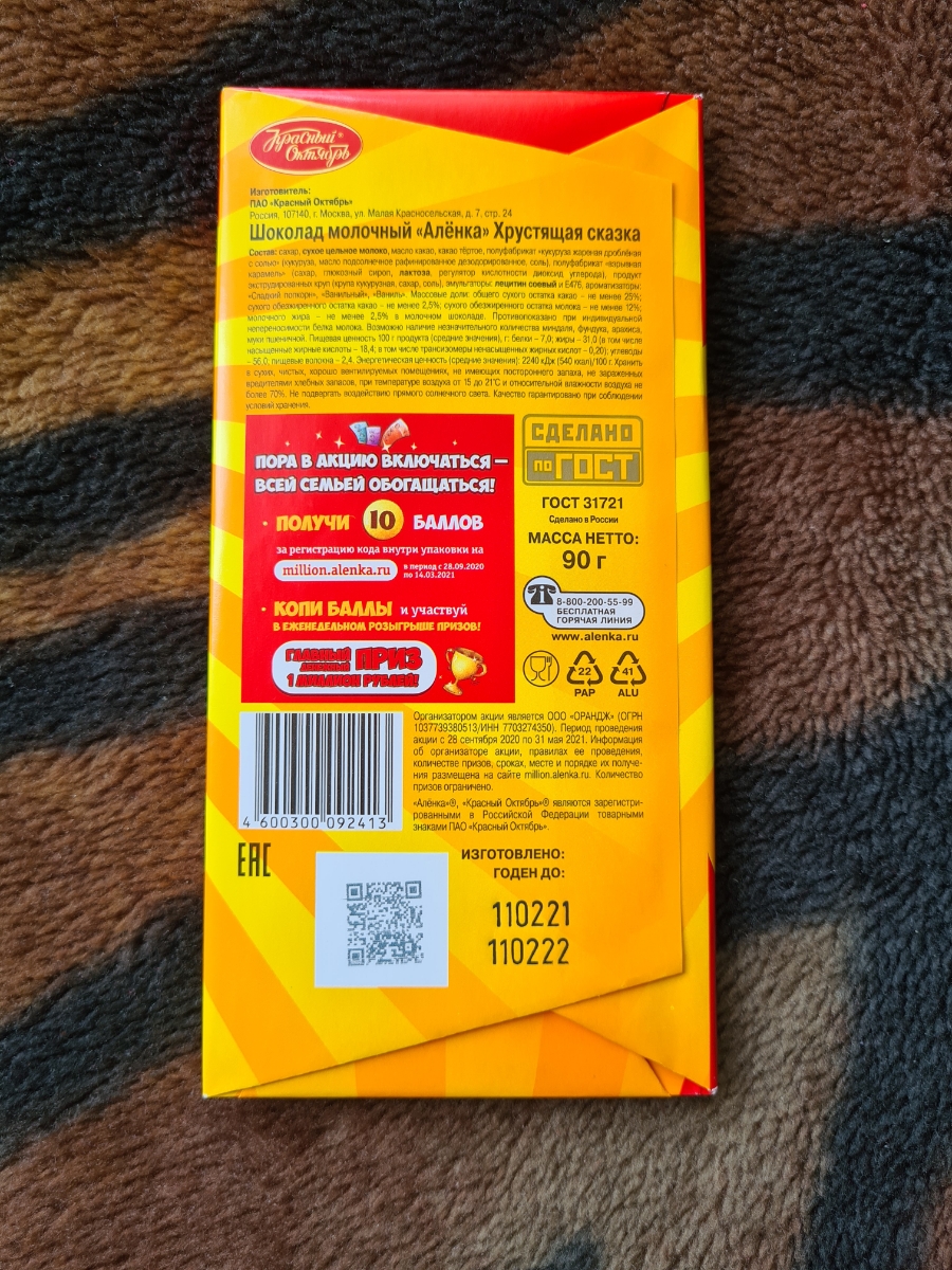 Шоколад Красный октябрь Аленка Хрустящая сказка, 90 г