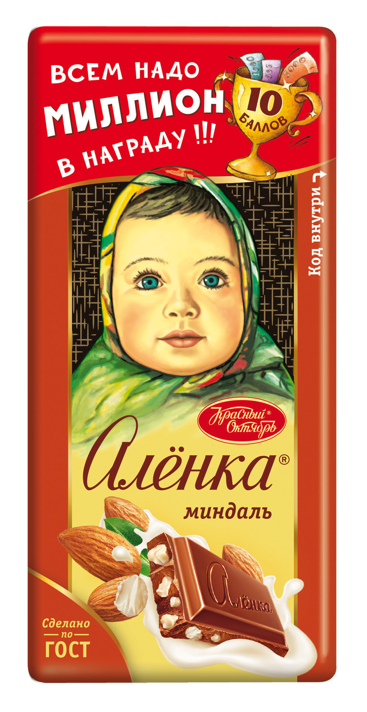 Шоколад Красный октябрь Аленка с миндалем, 90 г