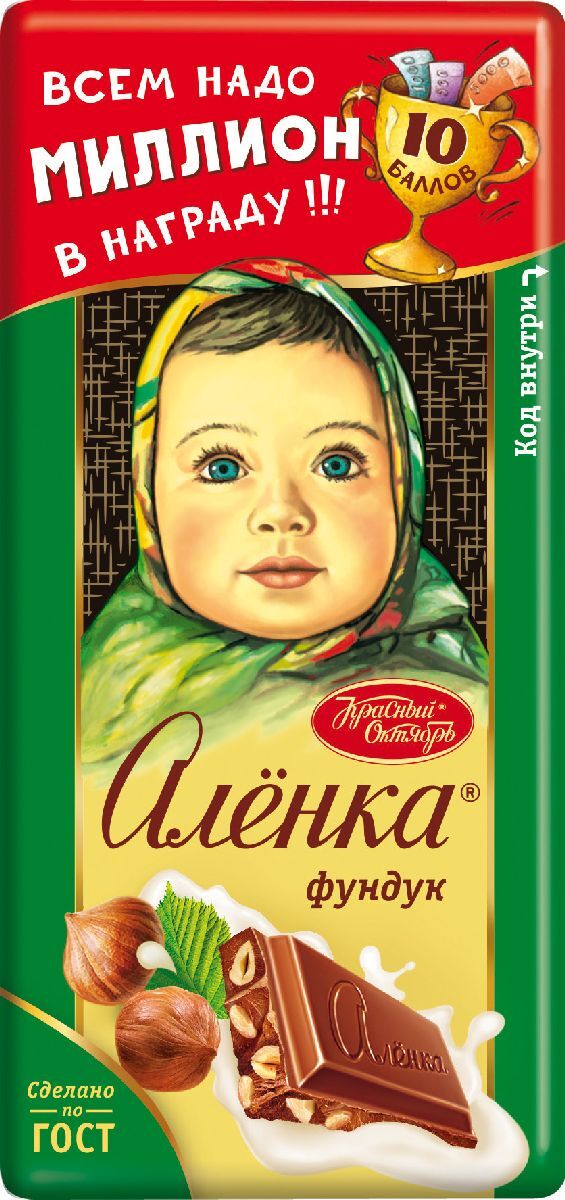 Шоколад Красный октябрь Аленка с фундуком, 90 г