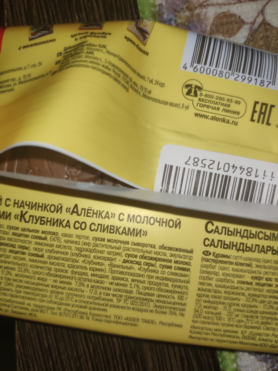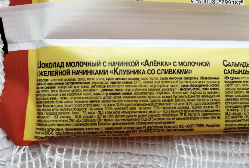 Шоколад Аленка с начинкой клубника со сливками, 87 г
