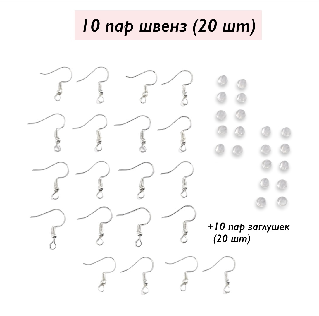 Швензы для сережек, серег/ фурнитура для бижутерии/ крючки для сережек 20 шт + силиконовые заглушки