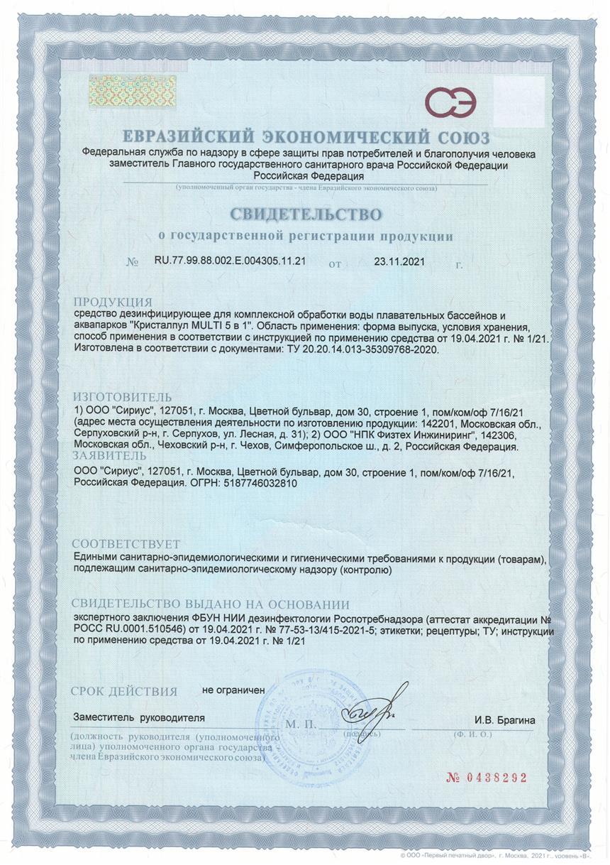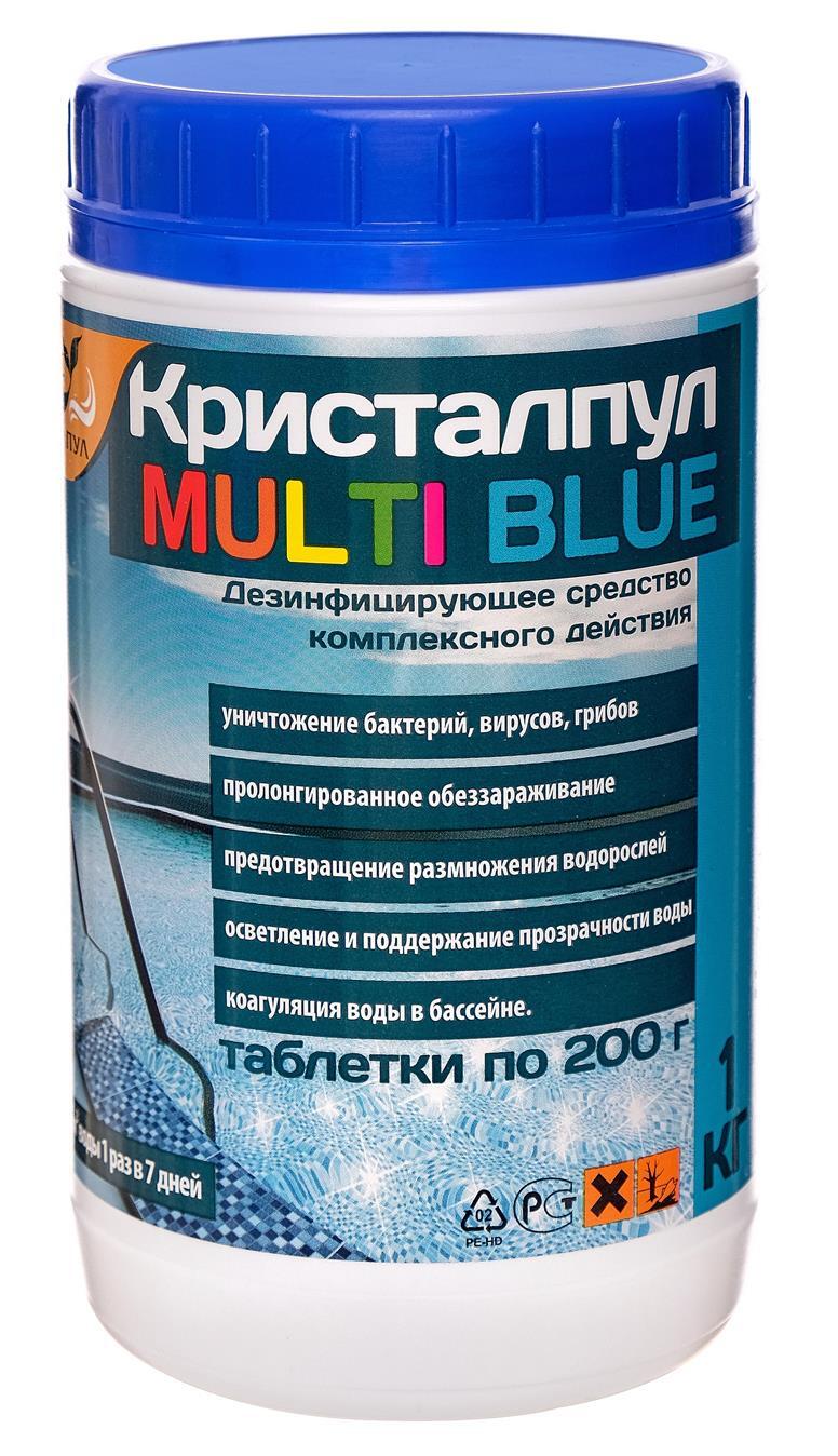 Мультифункциональное комплексное средство "Кристалпул MULTI BLUE 5 в 1" для бассейнов, табл. 200 г, банка 1 кг