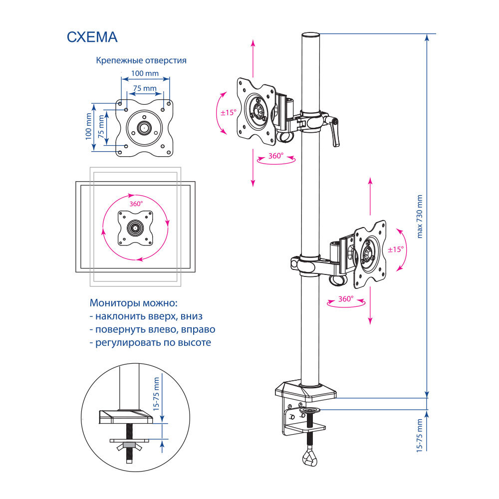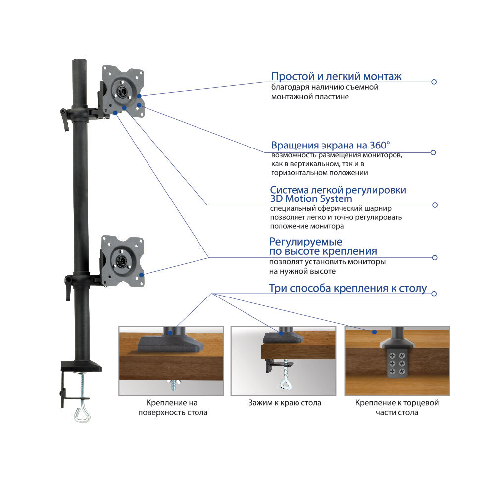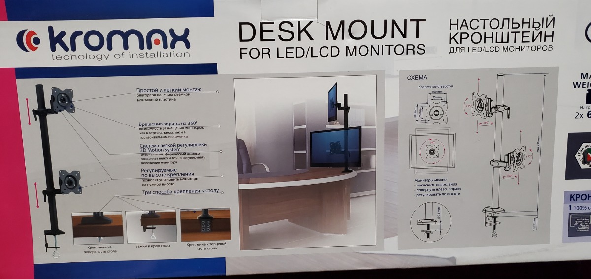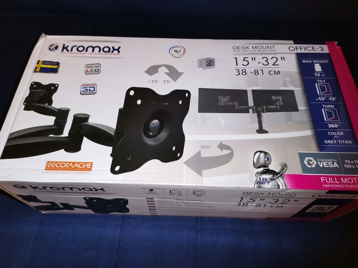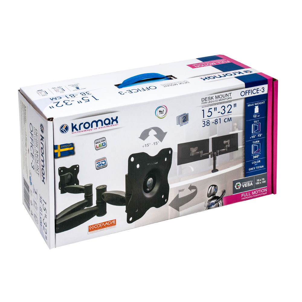 Кронштейн для монитора Kromax OFFICE-3, 10"-26" до 2x12 кг