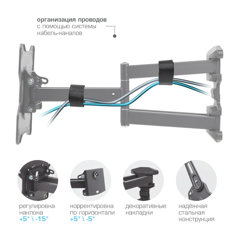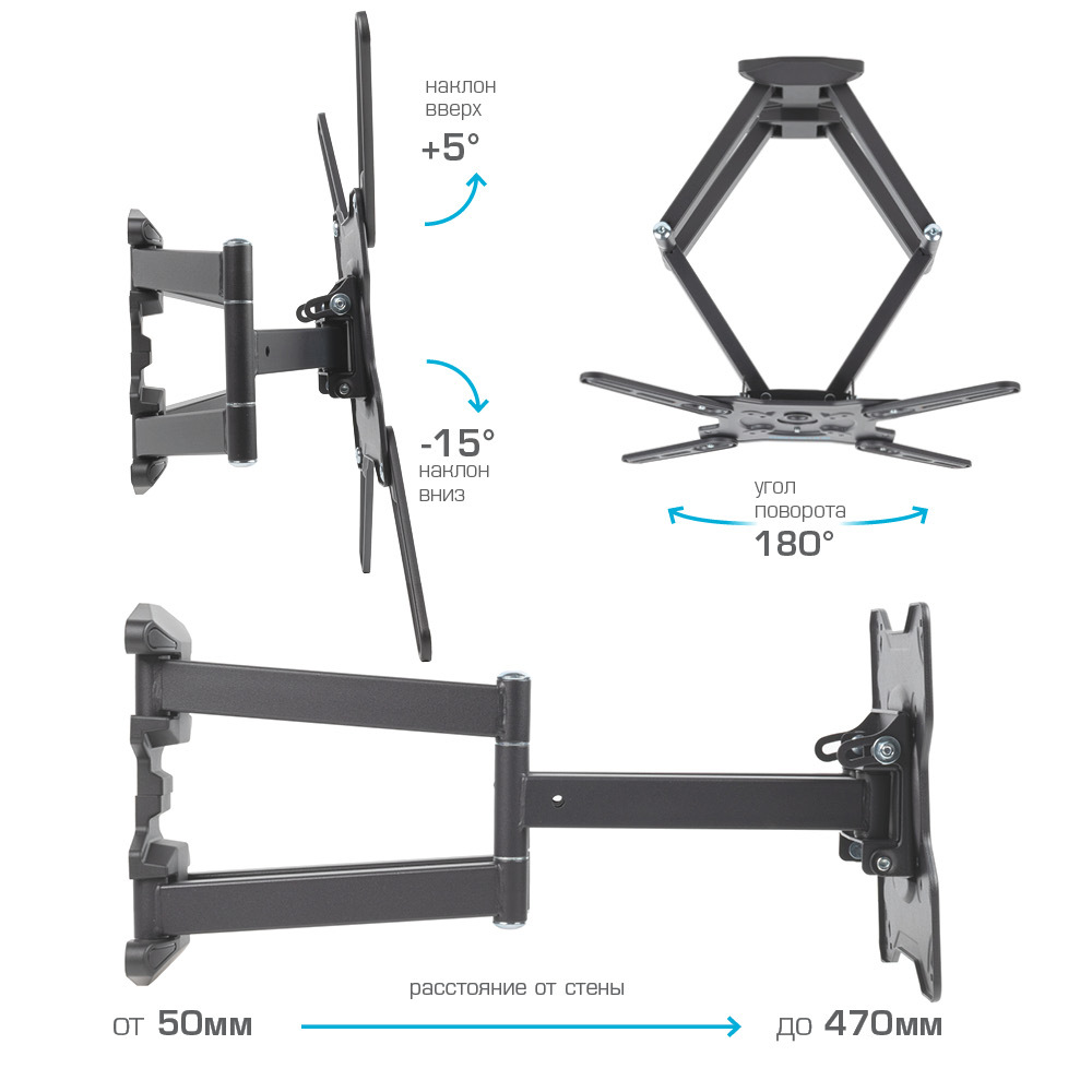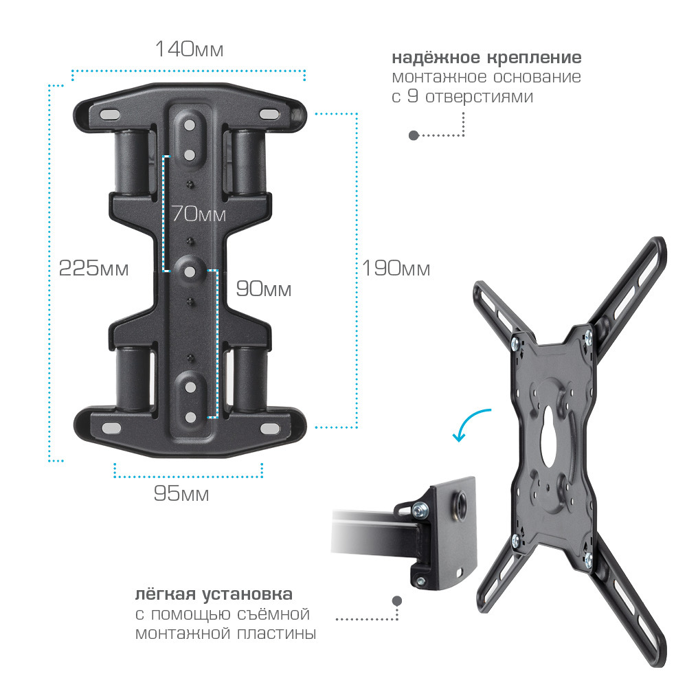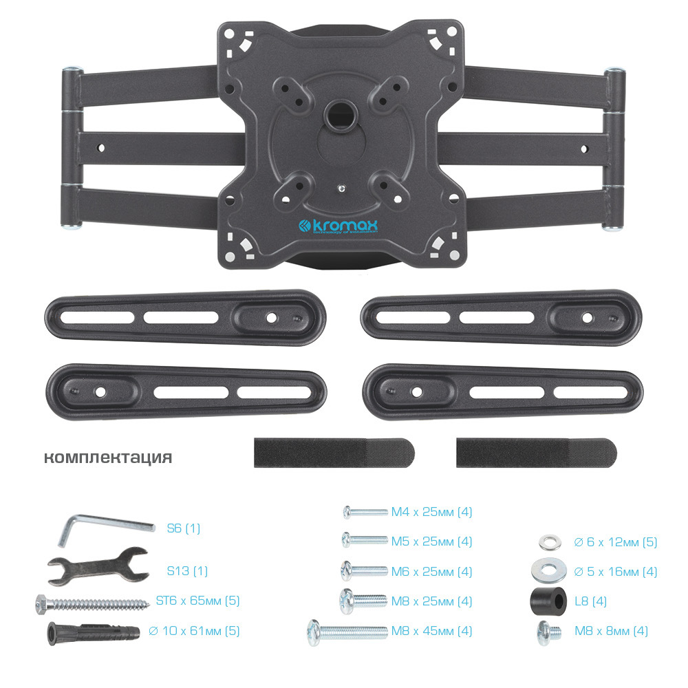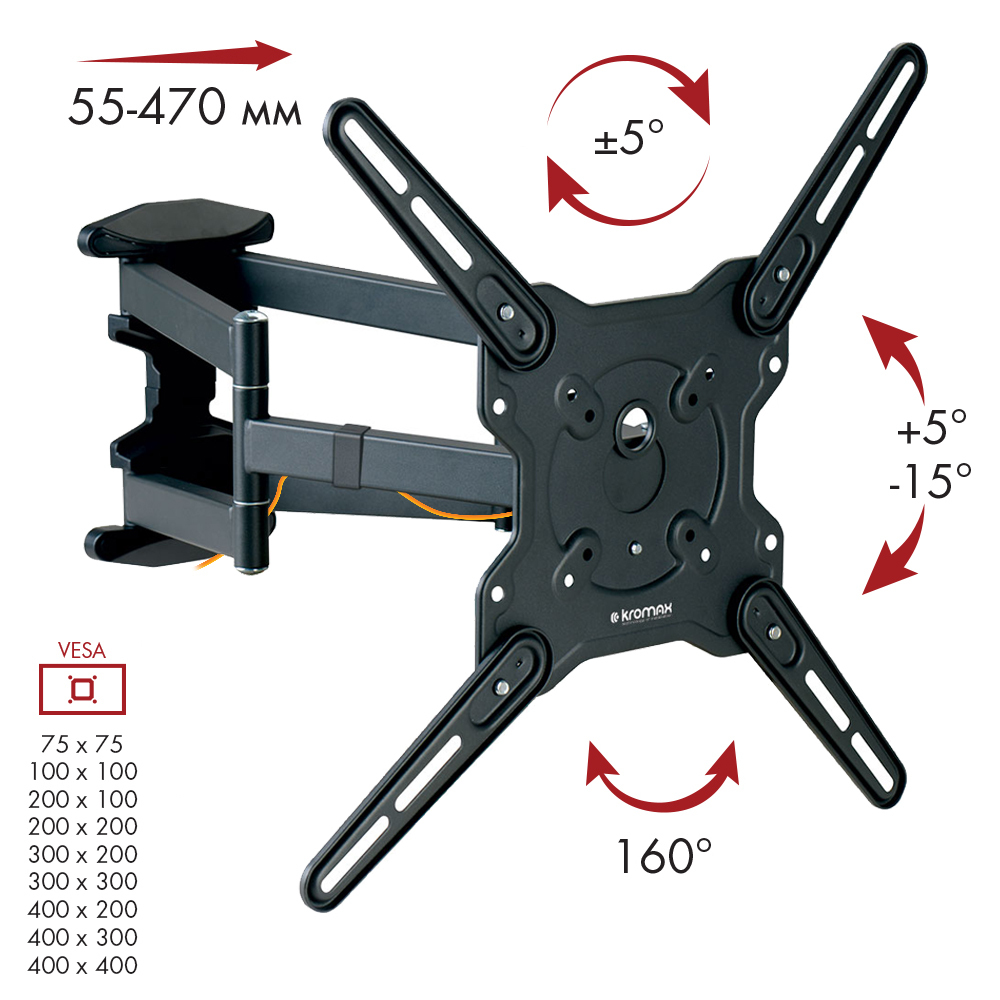 Кронштейн для телевизора настенный наклонно-поворотный Kromax OPTIMA-407, 22"-65" до 45 кг