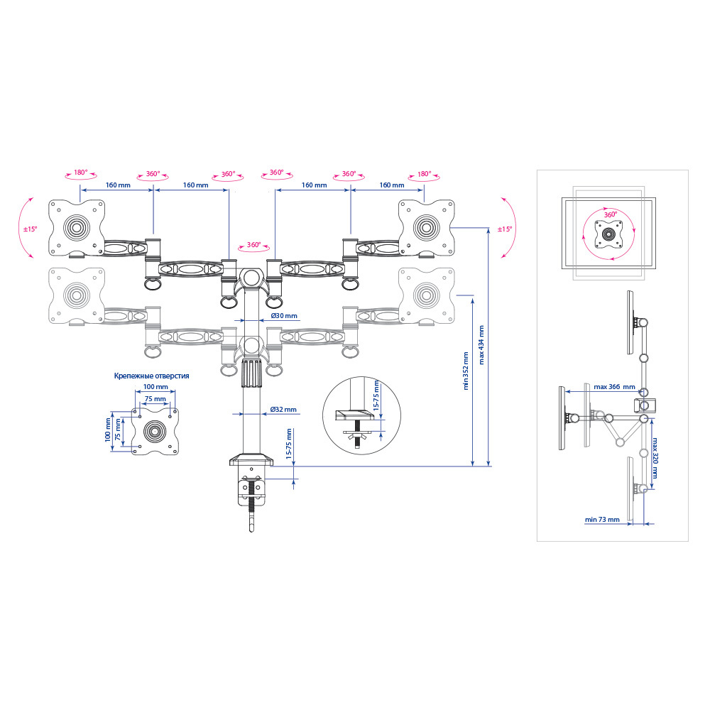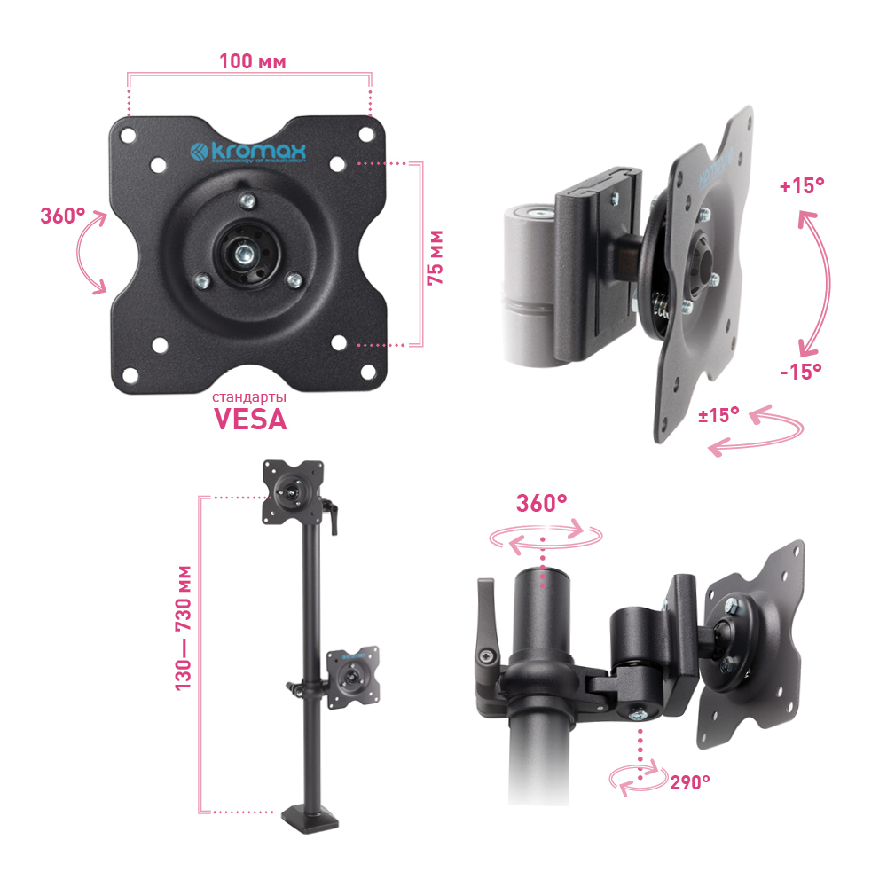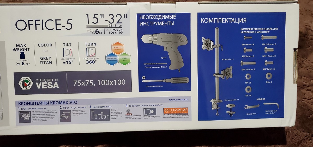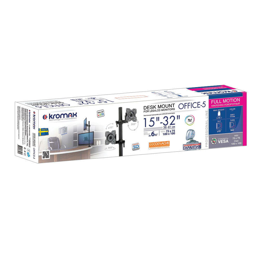 Кронштейн для монитора Kromax OFFICE-5, 15"-32" до 2х6 кг