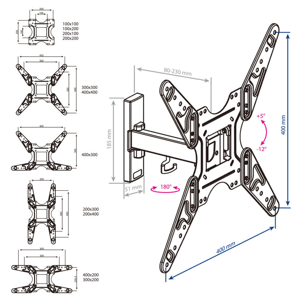 Kromax кронштейн наклонно-поворотный для ТВ OPTIMA-413, 20"-55" до 30 кг