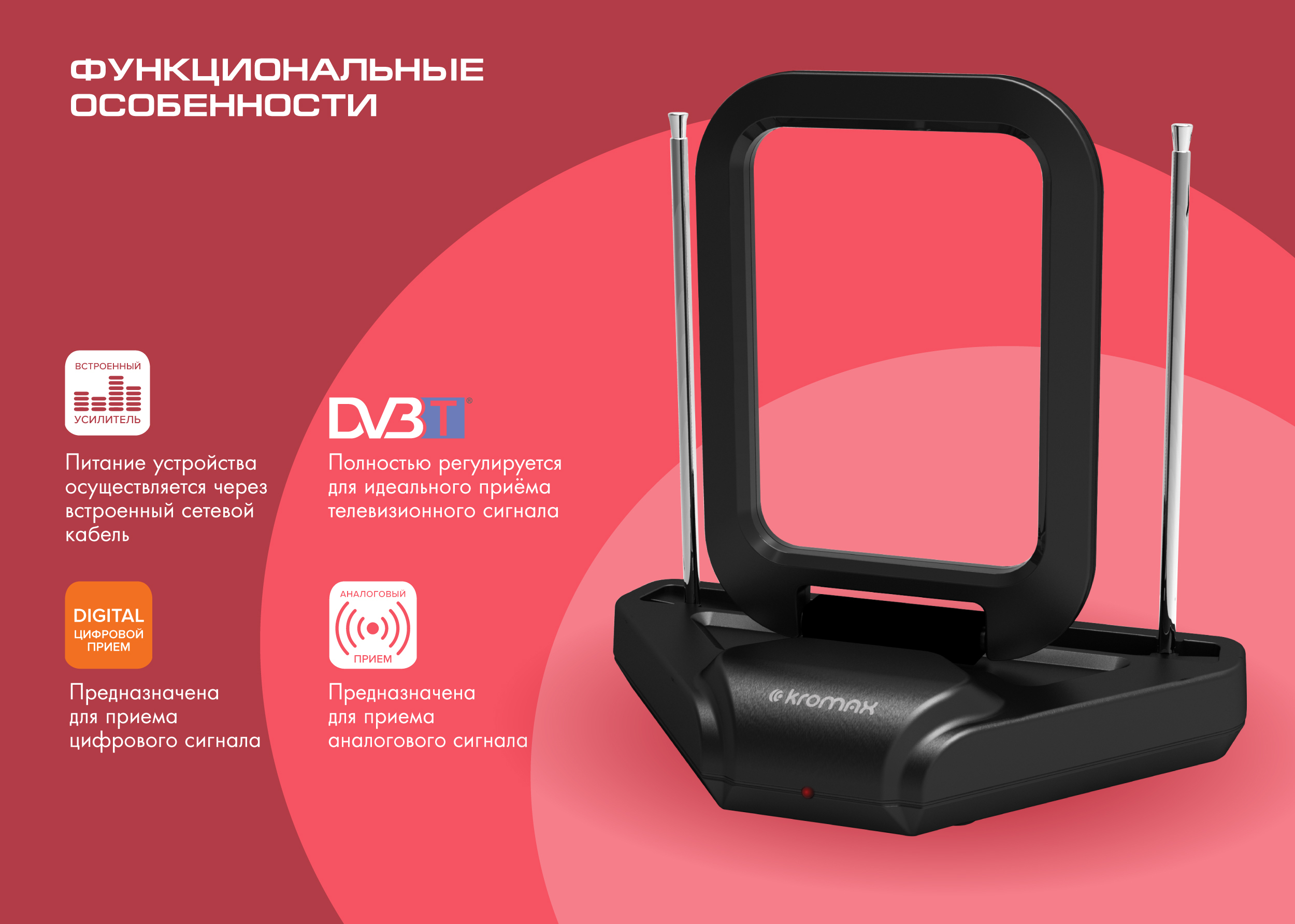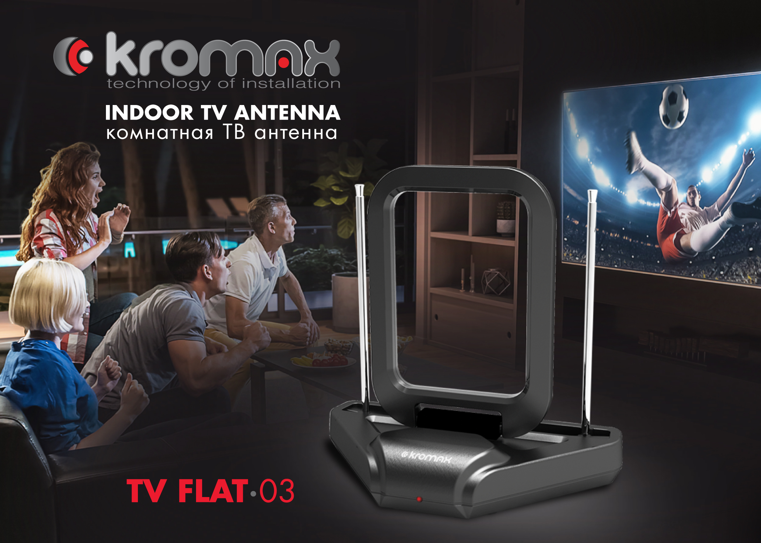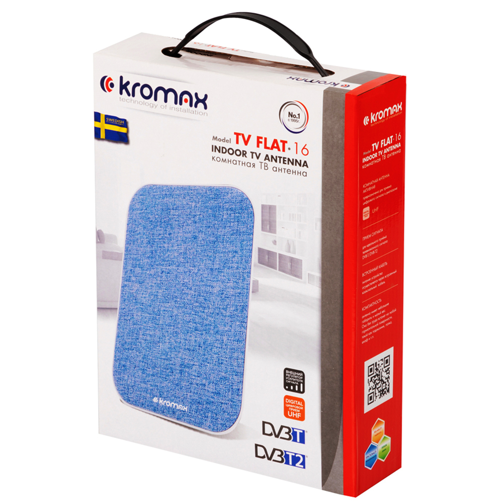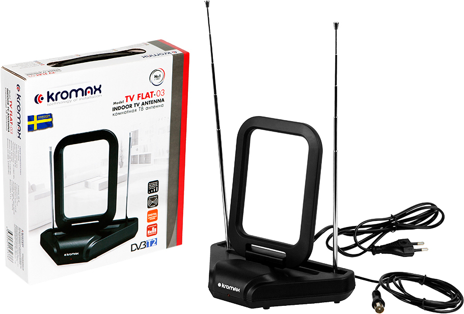 Антенна для цифрового тв телевизионная комнатная активная KROMAX TV FLAT-03, поддержка DVB-T2
