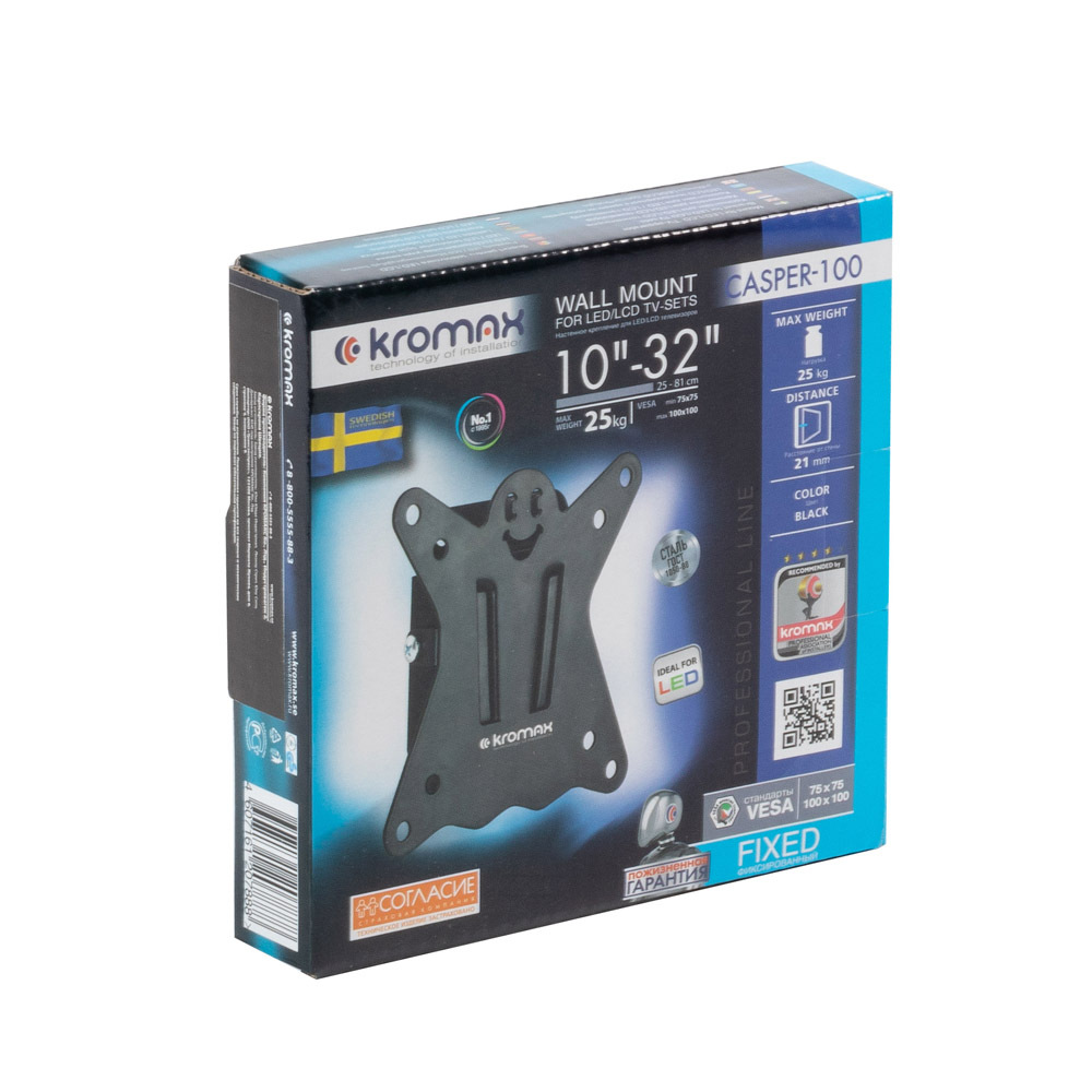 Кронштейн для телевизора Kromax CASPER-100 черный 10"-32" настенный, фиксированный, вес до 25кг