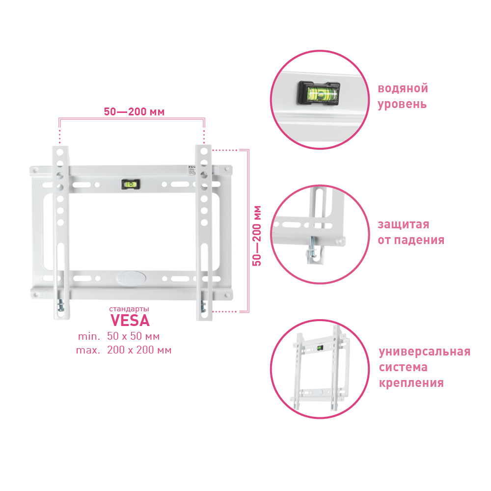 Кронштейн для телевизора настенный фиксированный Kromax IDEAL-5W, 15"-47" до 35 кг