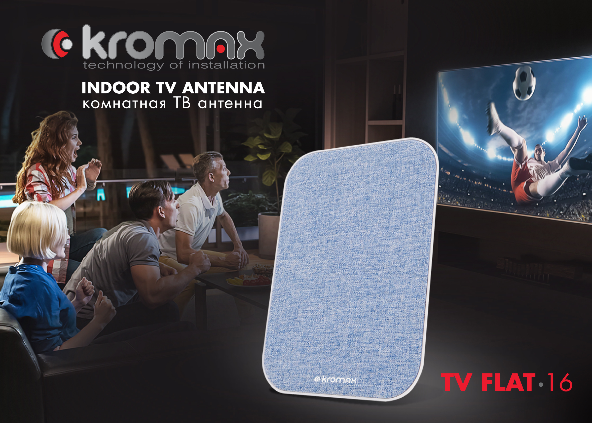 Антенна для цифрового тв телевизионная комнатная активная KROMAX TV FLAT-16