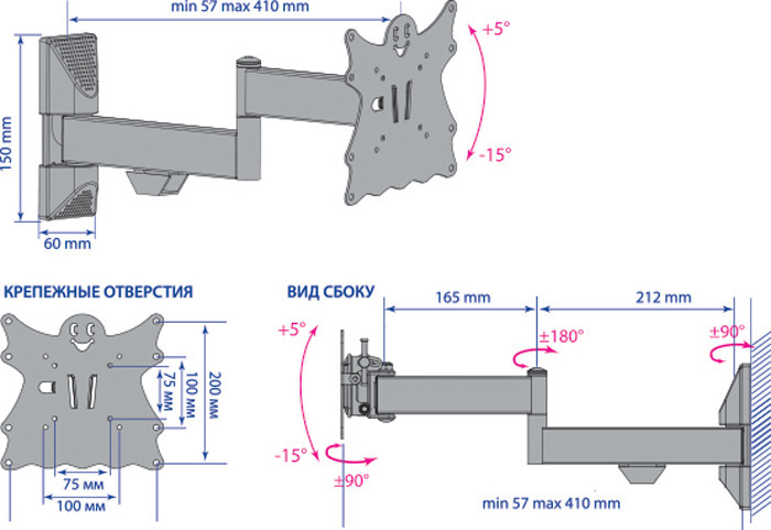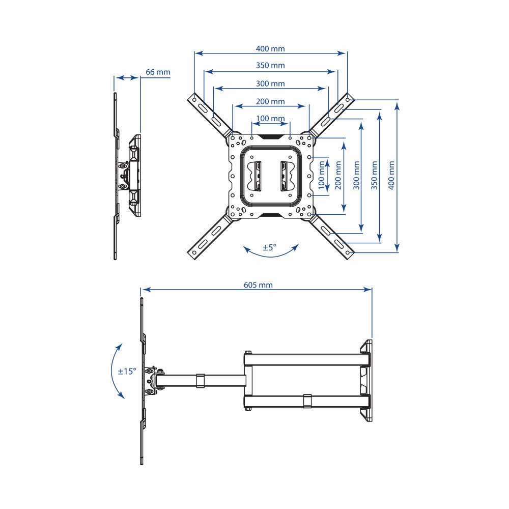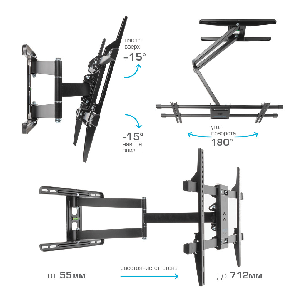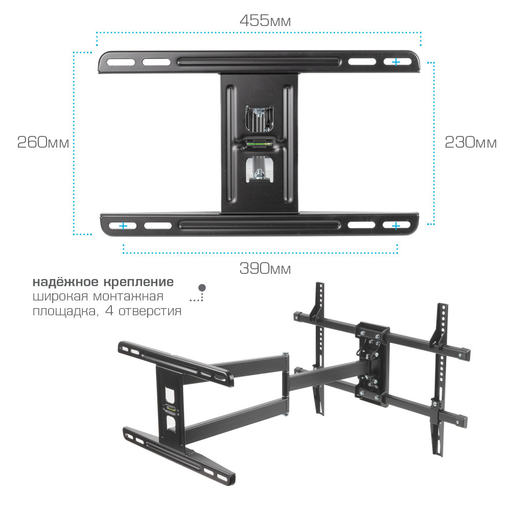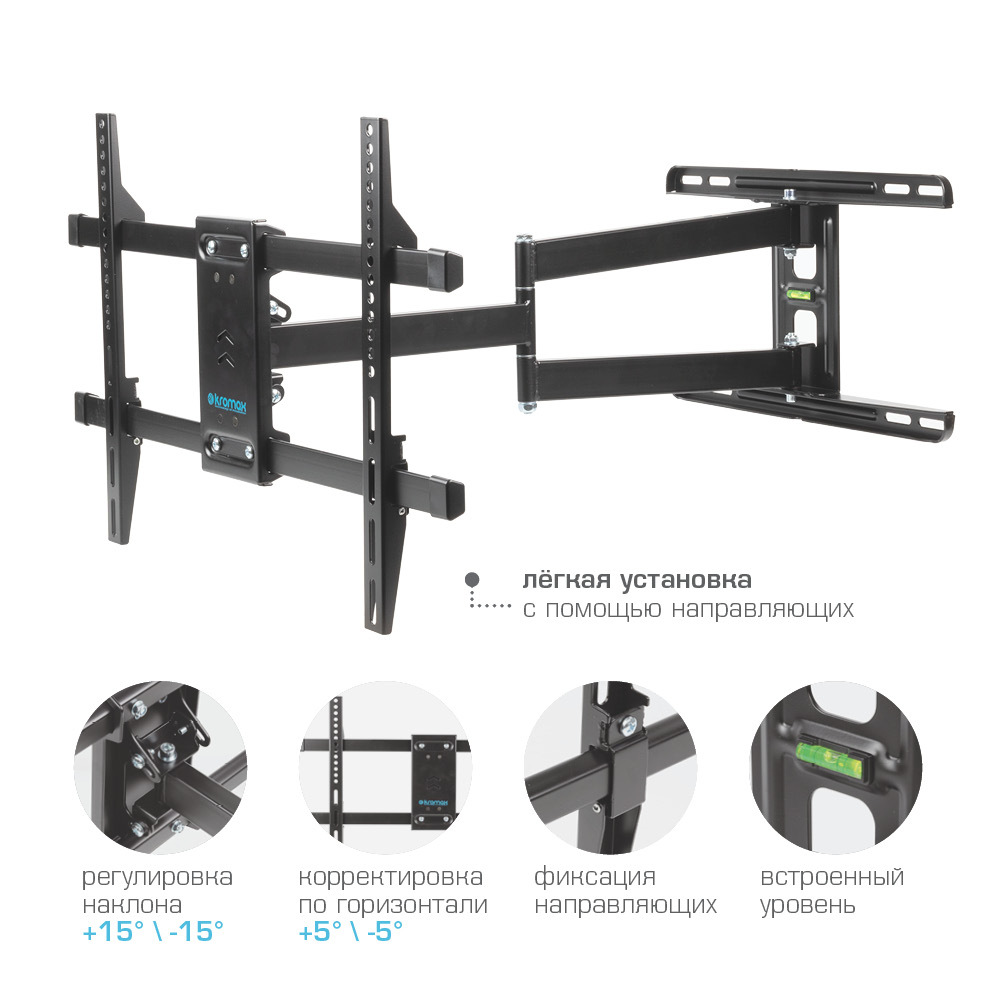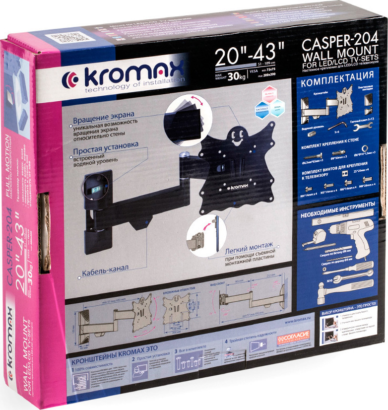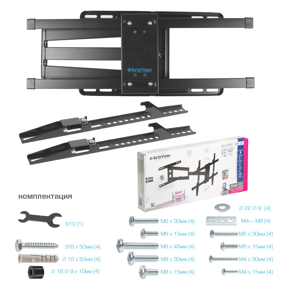 Кронштейн для телевизора настенный наклонно-поворотный Kromax DIX-20, 22"-65" до 45 кг