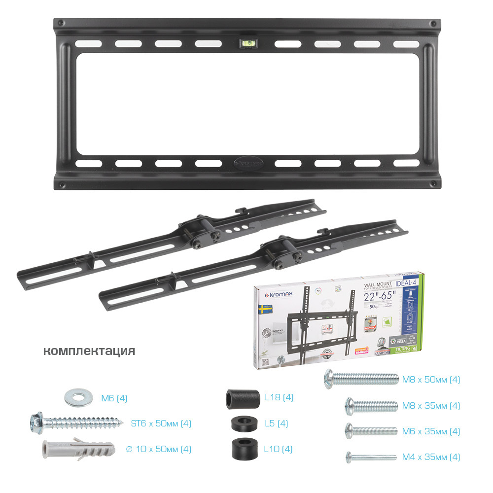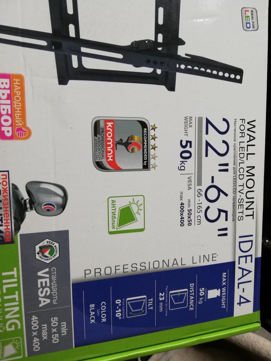Kromax кронштейн наклонный для ТВ IDEAL-4, 22"-65" до 50 кг