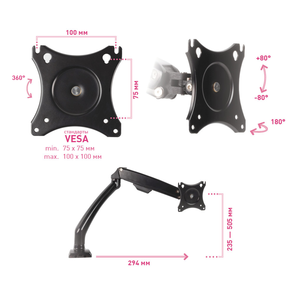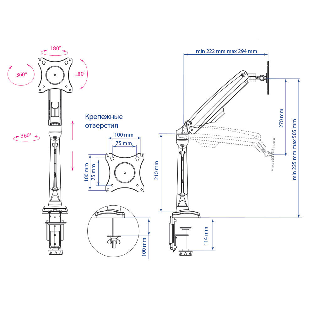 Кронштейн настольный для мониторов Kromax OFFICE-11 grey titan