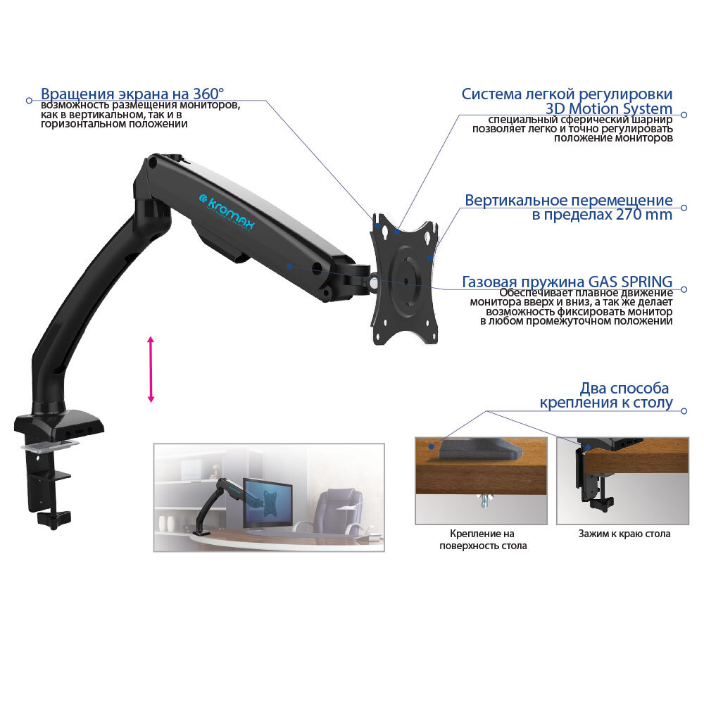 Кронштейн для монитора Kromax OFFICE-11, 15"-32" до 10 кг