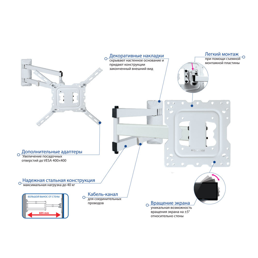 Kromax кронштейн наклонно-поворотный для ТВ DIX-18W, 22"-55" до 40 кг