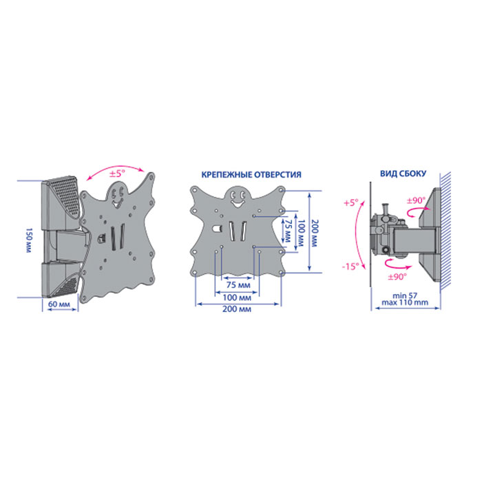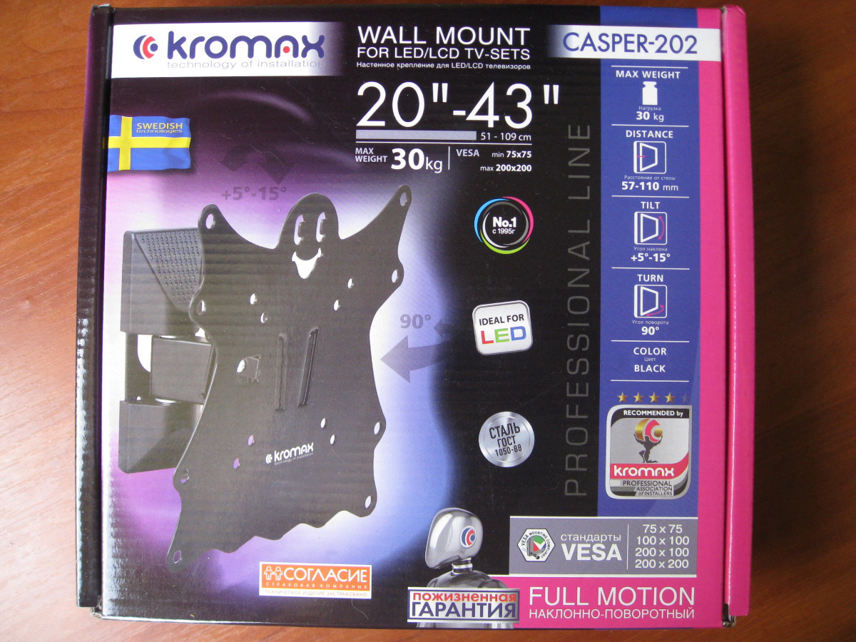 Кронштейны и крепление KROMAX FLAT-3 для 22"-65" BLACK