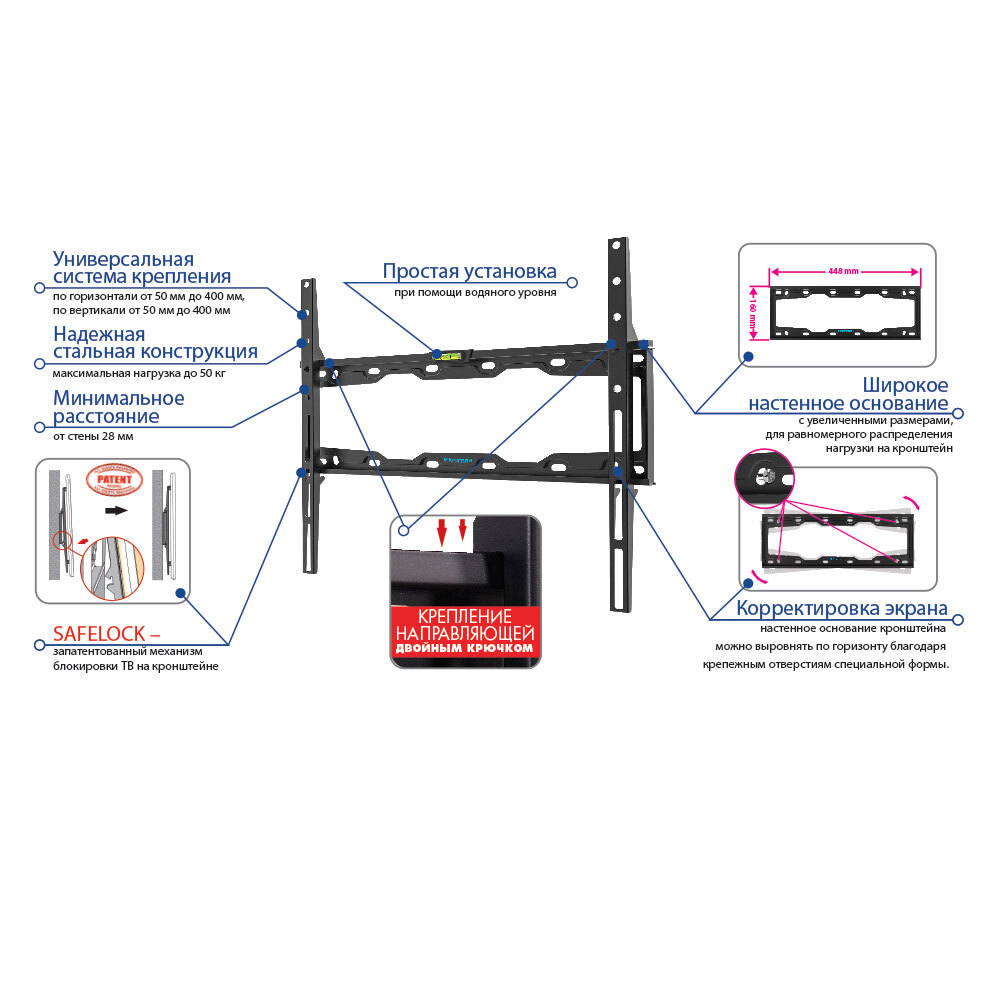 Кронштейн для телевизора настенный фиксированный Kromax ELEMENT-3, 22"-65" до 50 кг