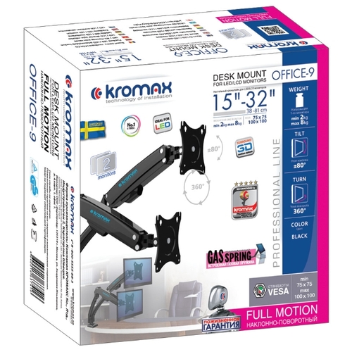 Кронштейн Kromax для мониторов ЖК черный 15"-32" макс. 24кг настольный поворот и наклон OFFICE-4