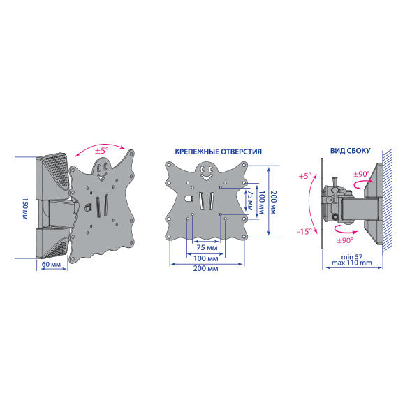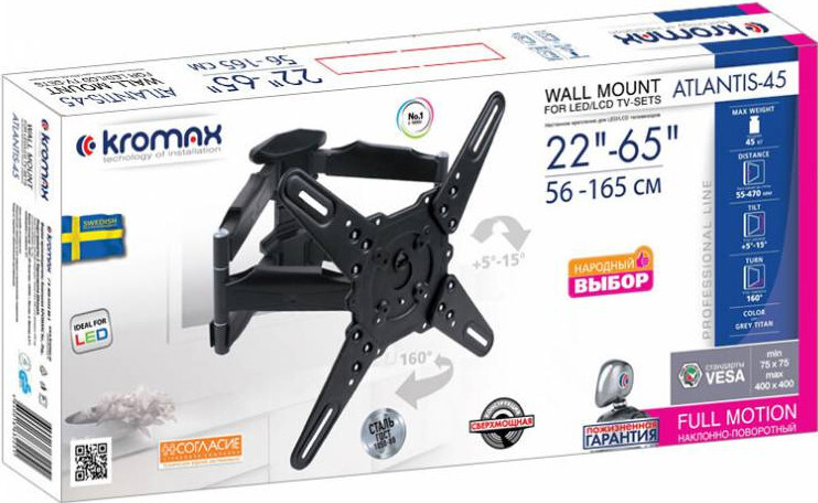 Кронштейн для телевизора Kromax ATLANTIS-45 темно-серый 22"-65" макс.45кг настенный поворот и наклон