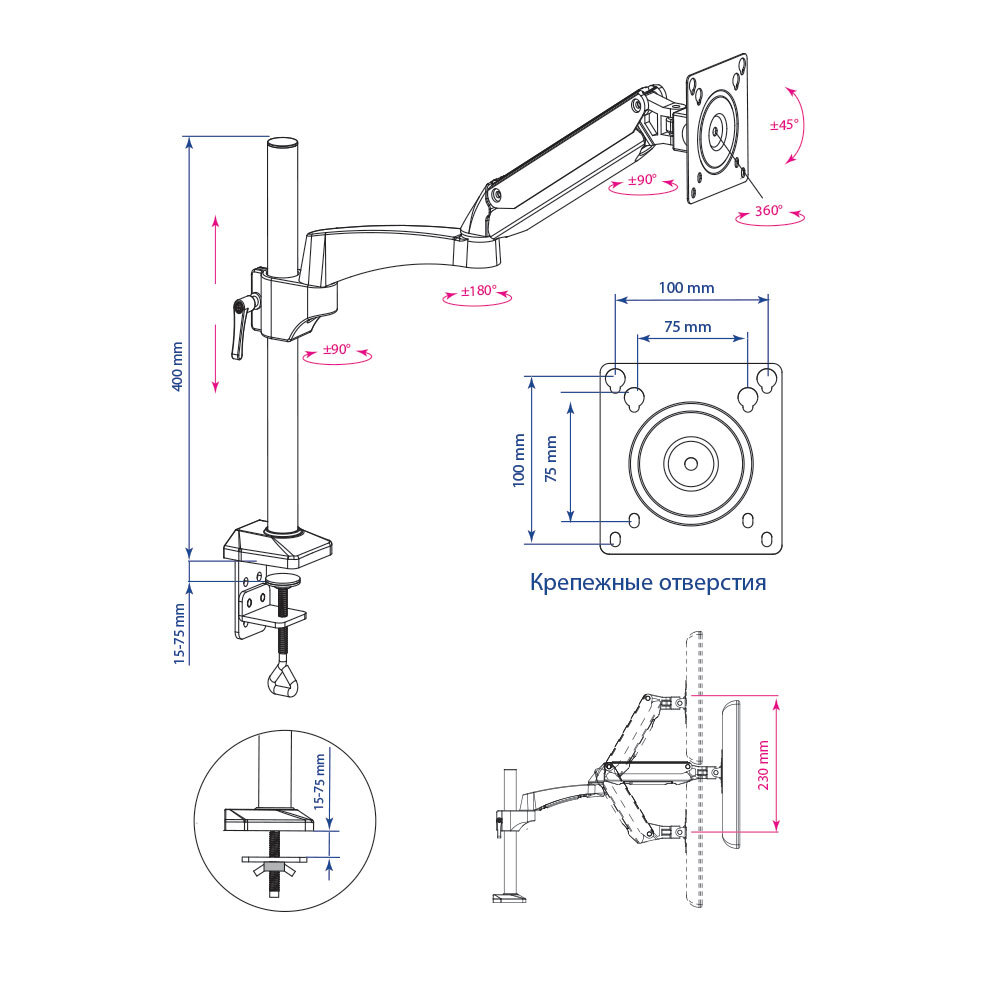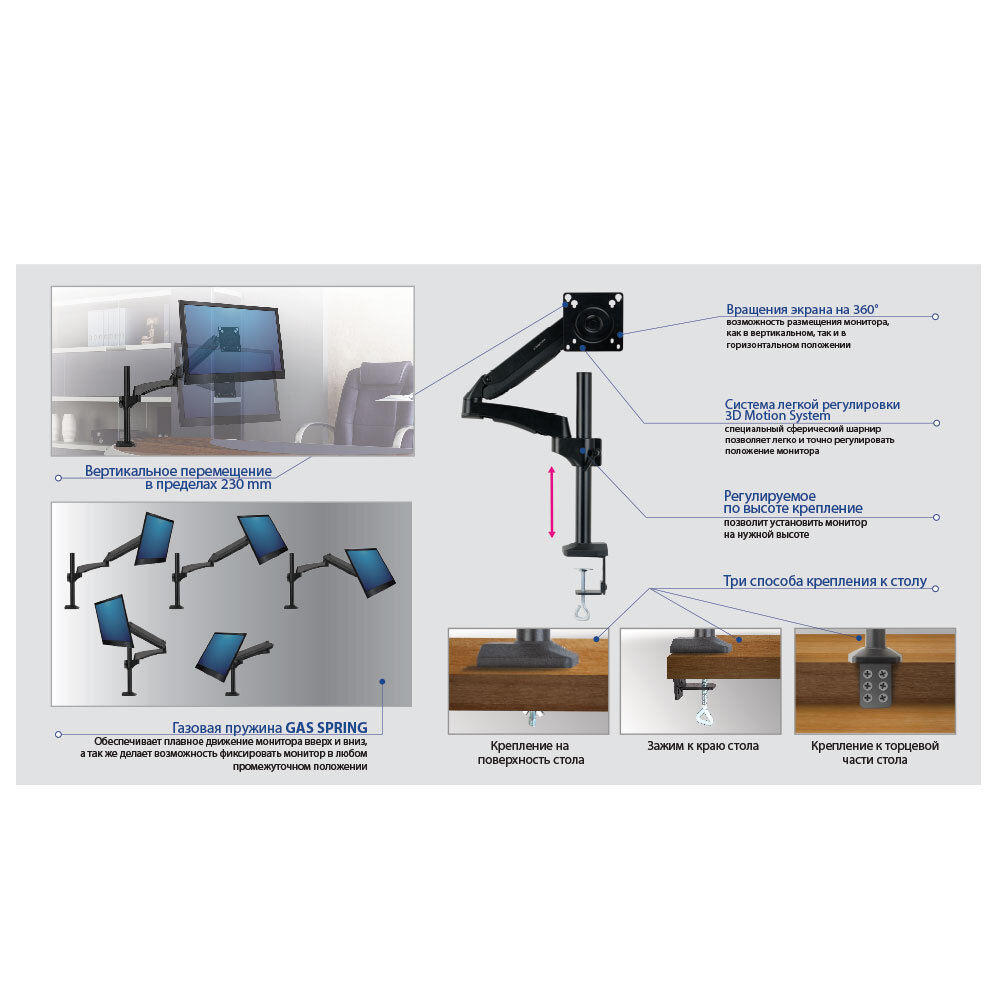 Кронштейн настольный для мониторов Kromax OFFICE-11 grey titan