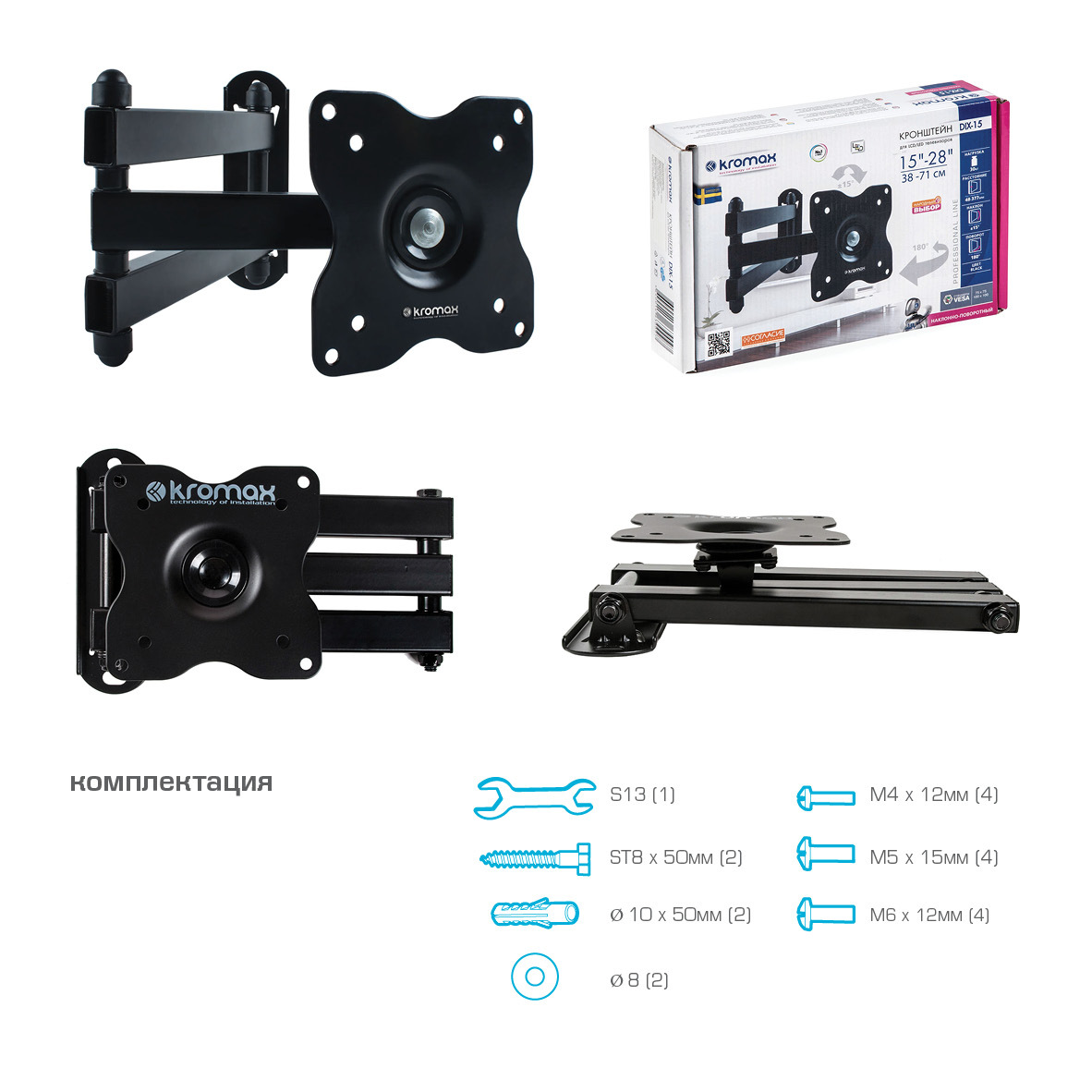 Кронштейн для LED/LCD телевизоров Kromax Dix-15 black 20202