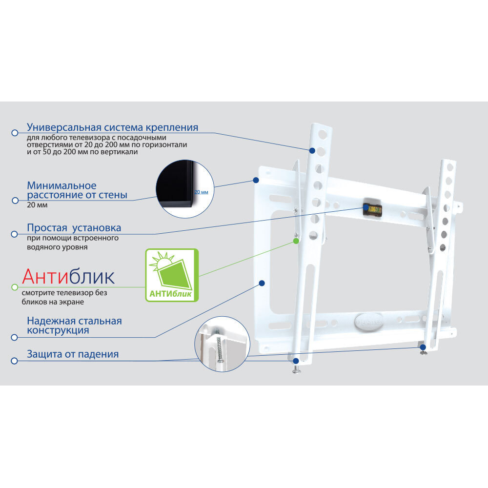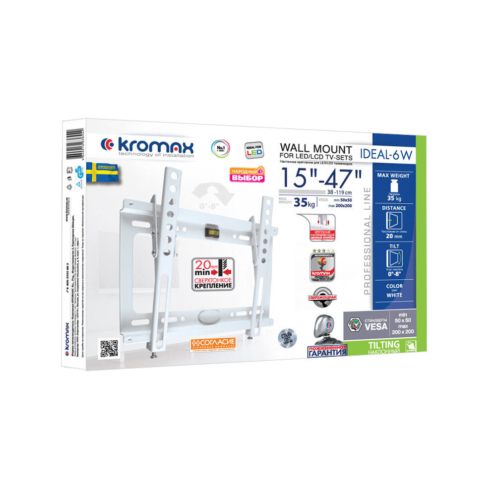 Кронштейн для телевизора Kromax IDEAL-6 белый 15"-47" макс.35кг настенный наклон