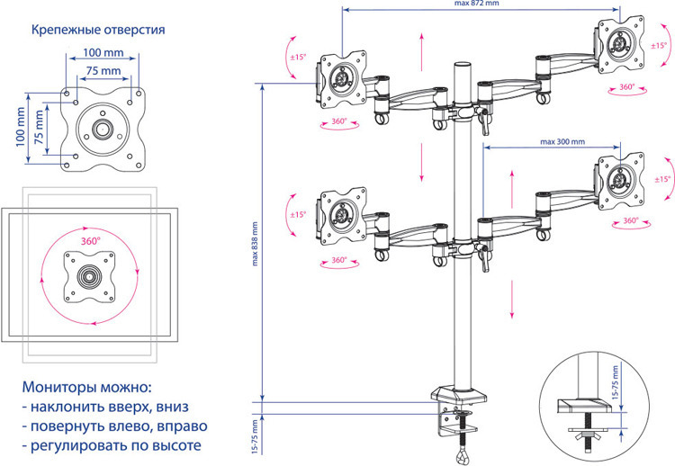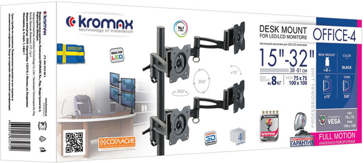 Кронштейн для монитора Kromax OFFICE-11, 15"-32" до 10 кг