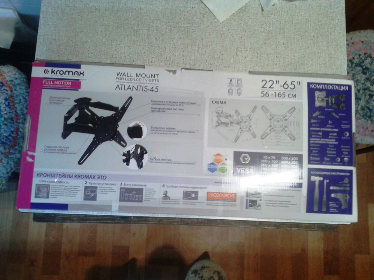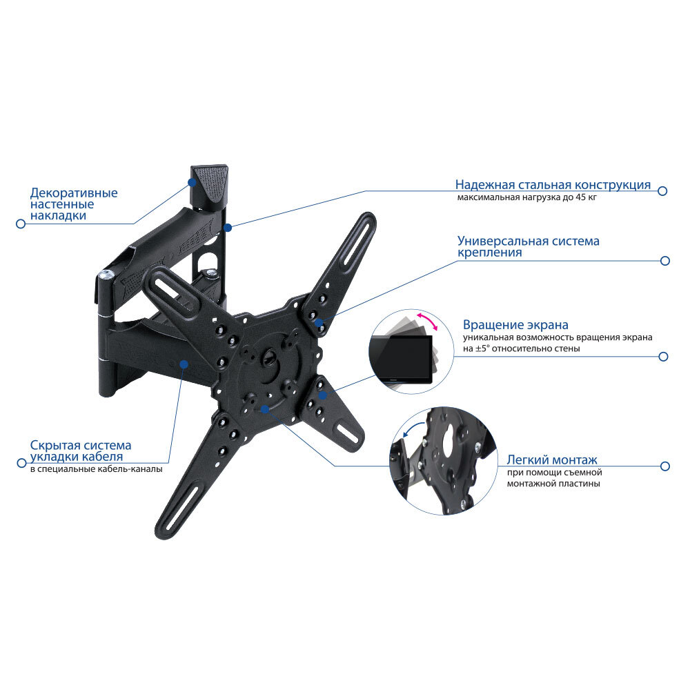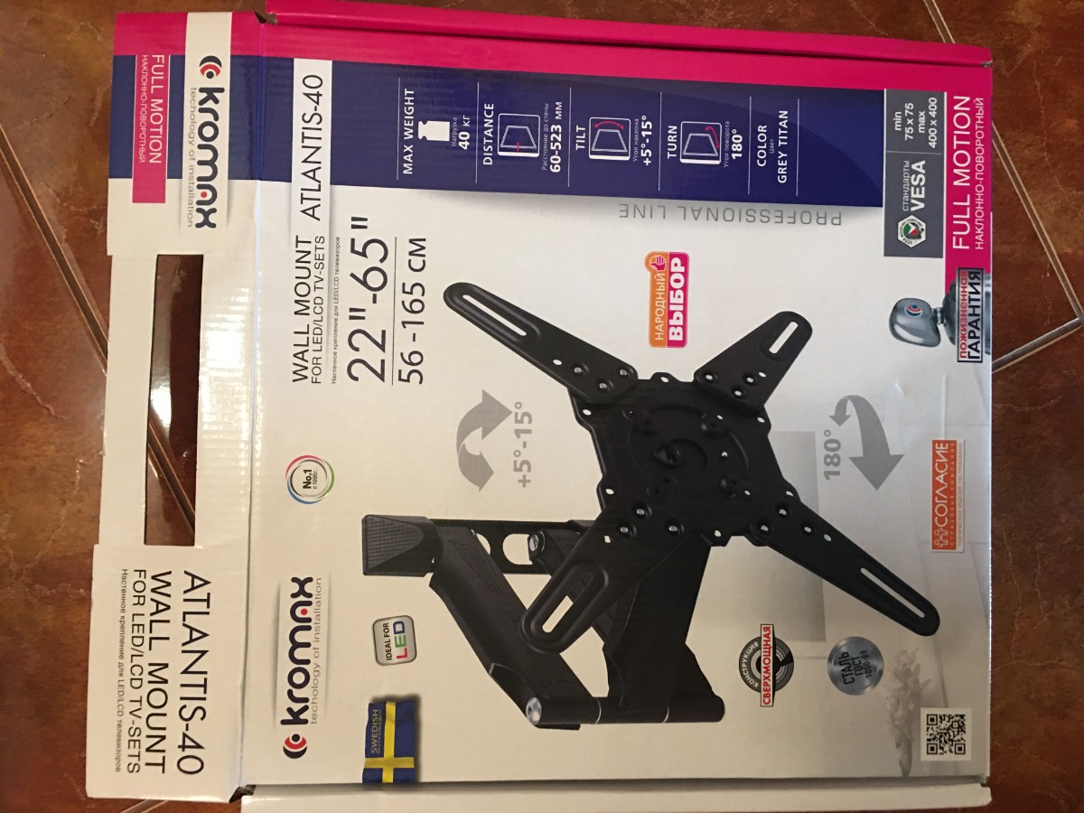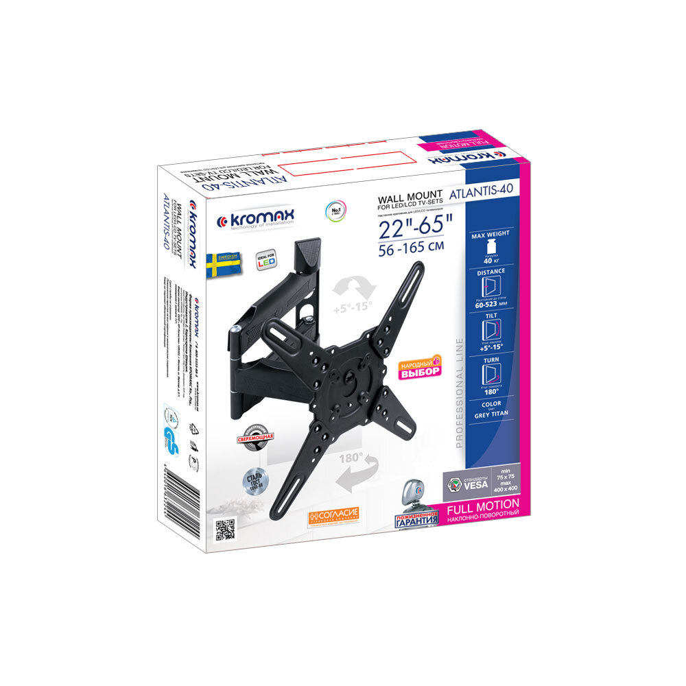 Кронштейн для телевизора настенный наклонно-поворотный Kromax ATLANTIS-45W, 22"-65" до 45 кг