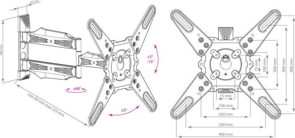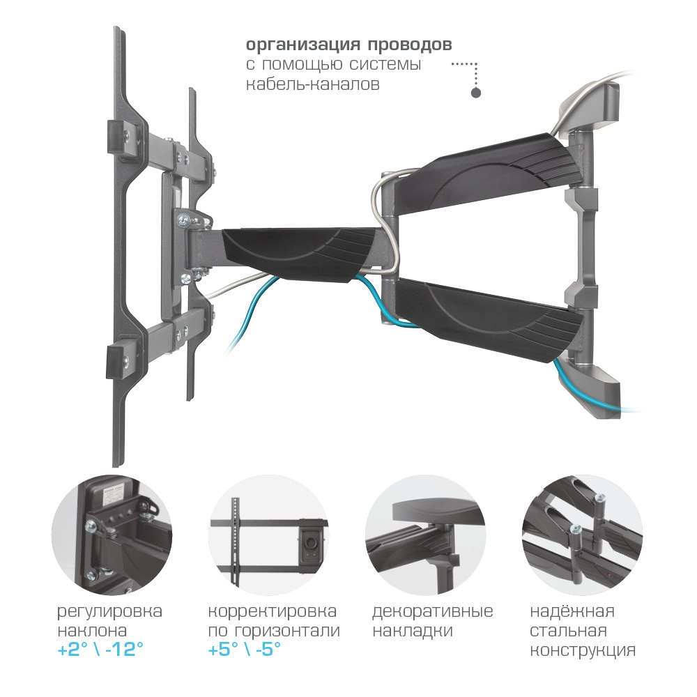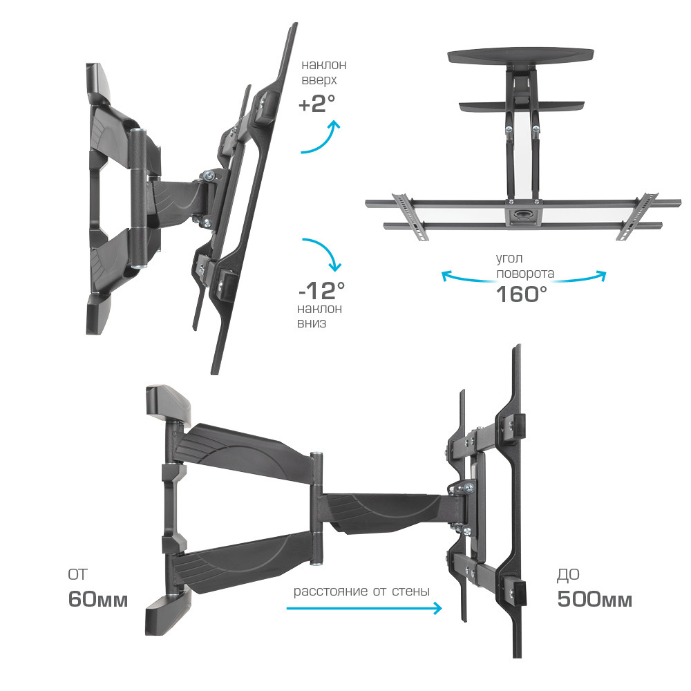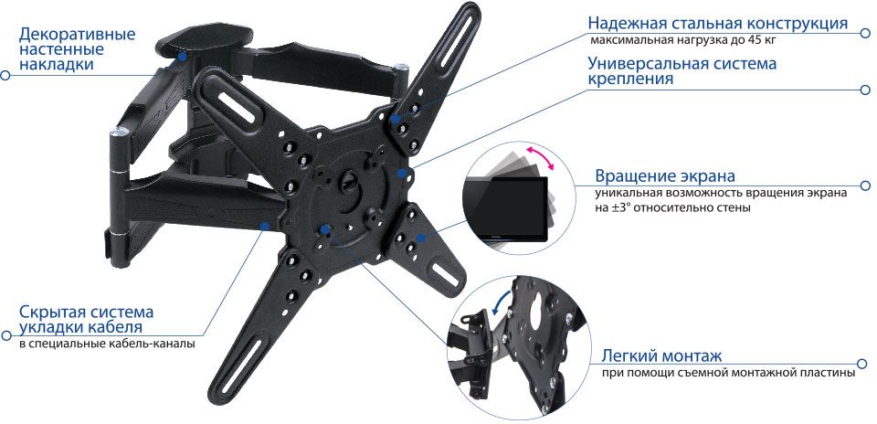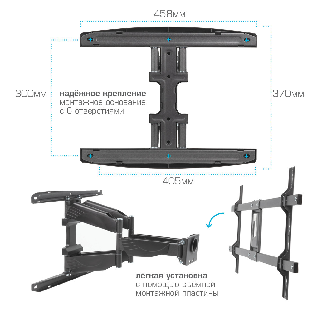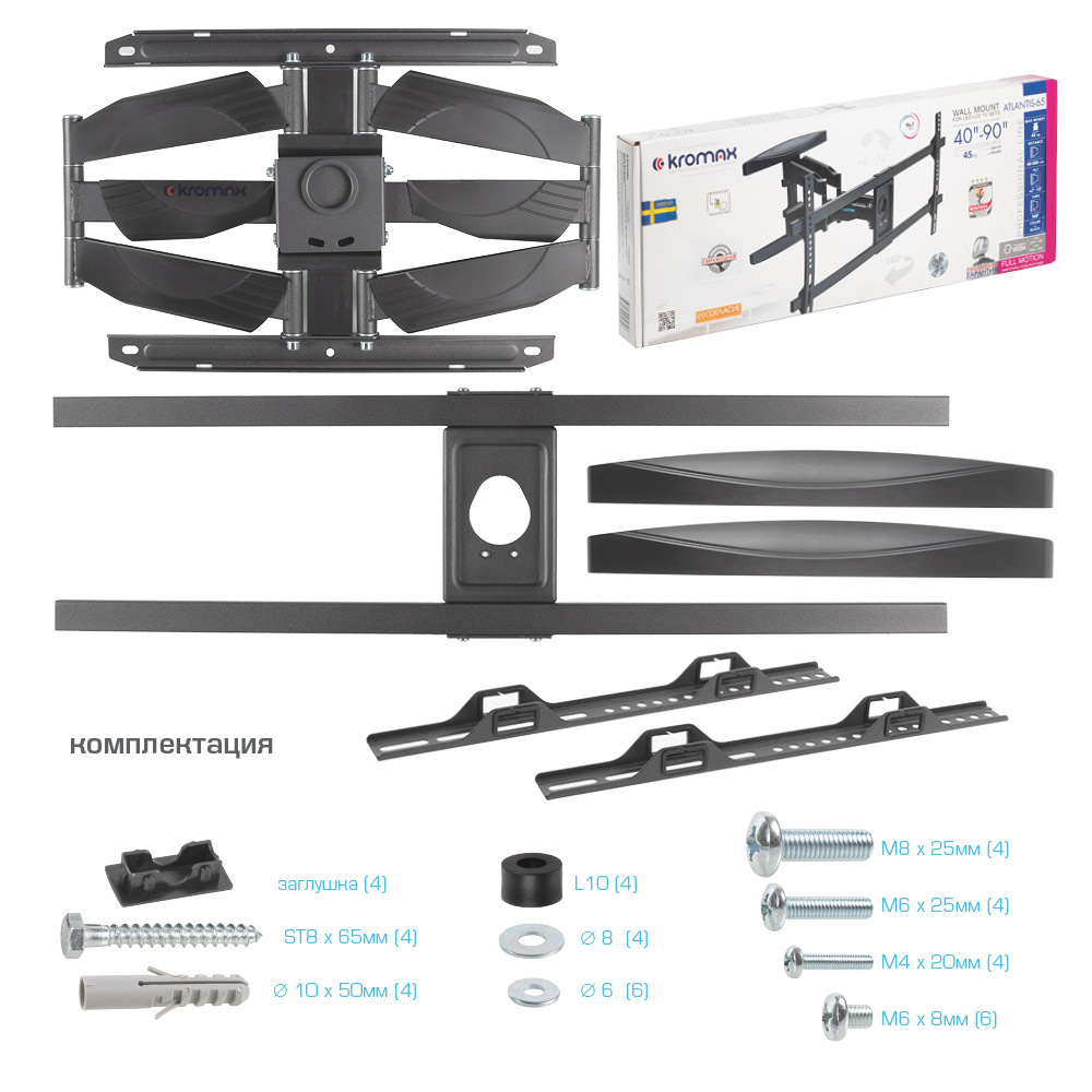 Кронштейн для телевизора настенный наклонно-поворотный Kromax ATLANTIS-45W, 22"-65" до 45 кг