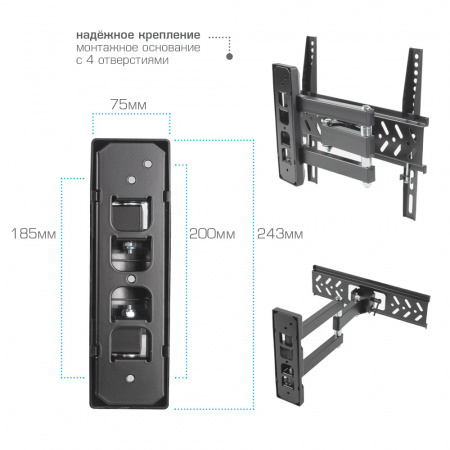 Кронштейн для телевизора Kromax DIX-25 черный 24"-55" макс.20кг настенный поворотно-выдвижной и накл