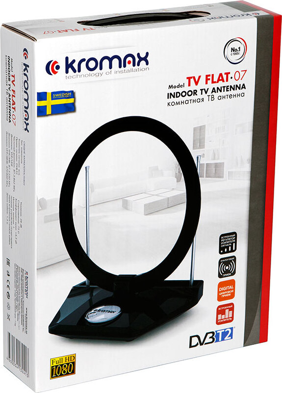 Комнатная ТВ антенна KROMAX TV FLAT-17