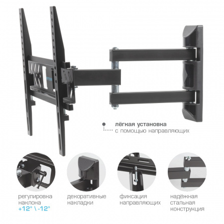 Кронштейн для телевизора Kromax DIX-24 черный 15"-55" макс.35кг настенный поворотно-выдвижной и накл