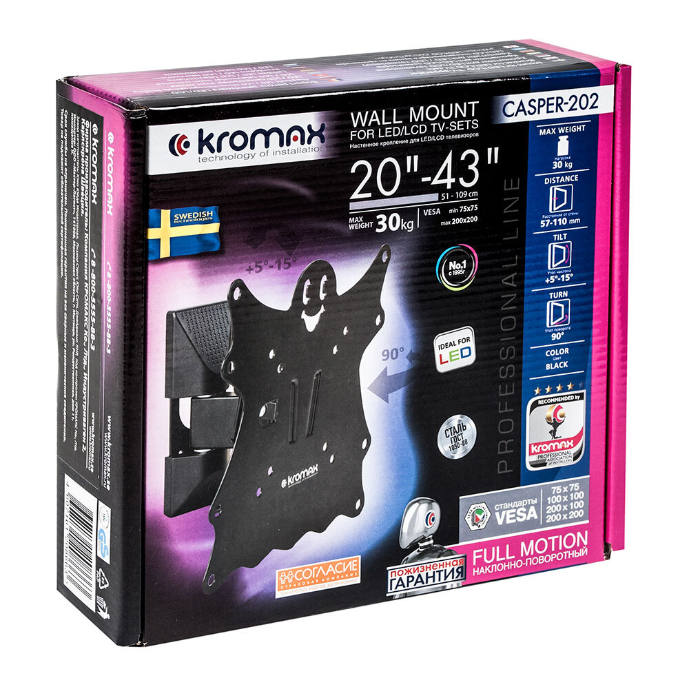 Kromax кронштейн наклонно-поворотный для ТВ PIXIS-XS, 22"-55" до 30 кг