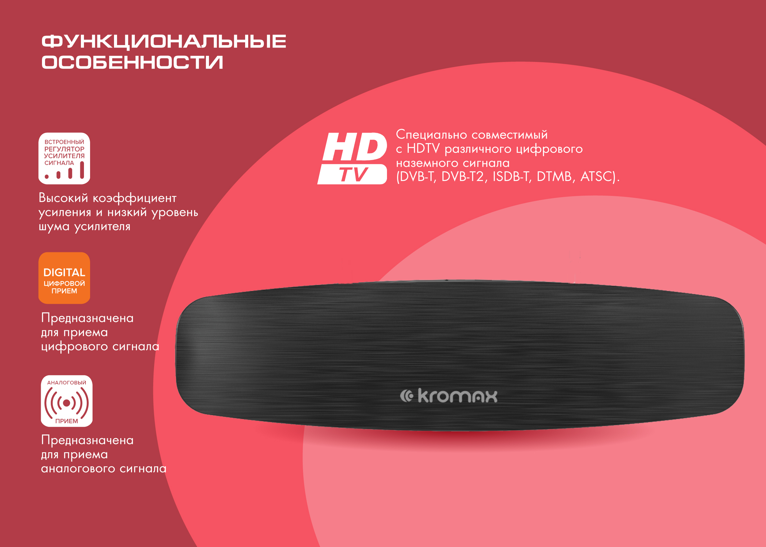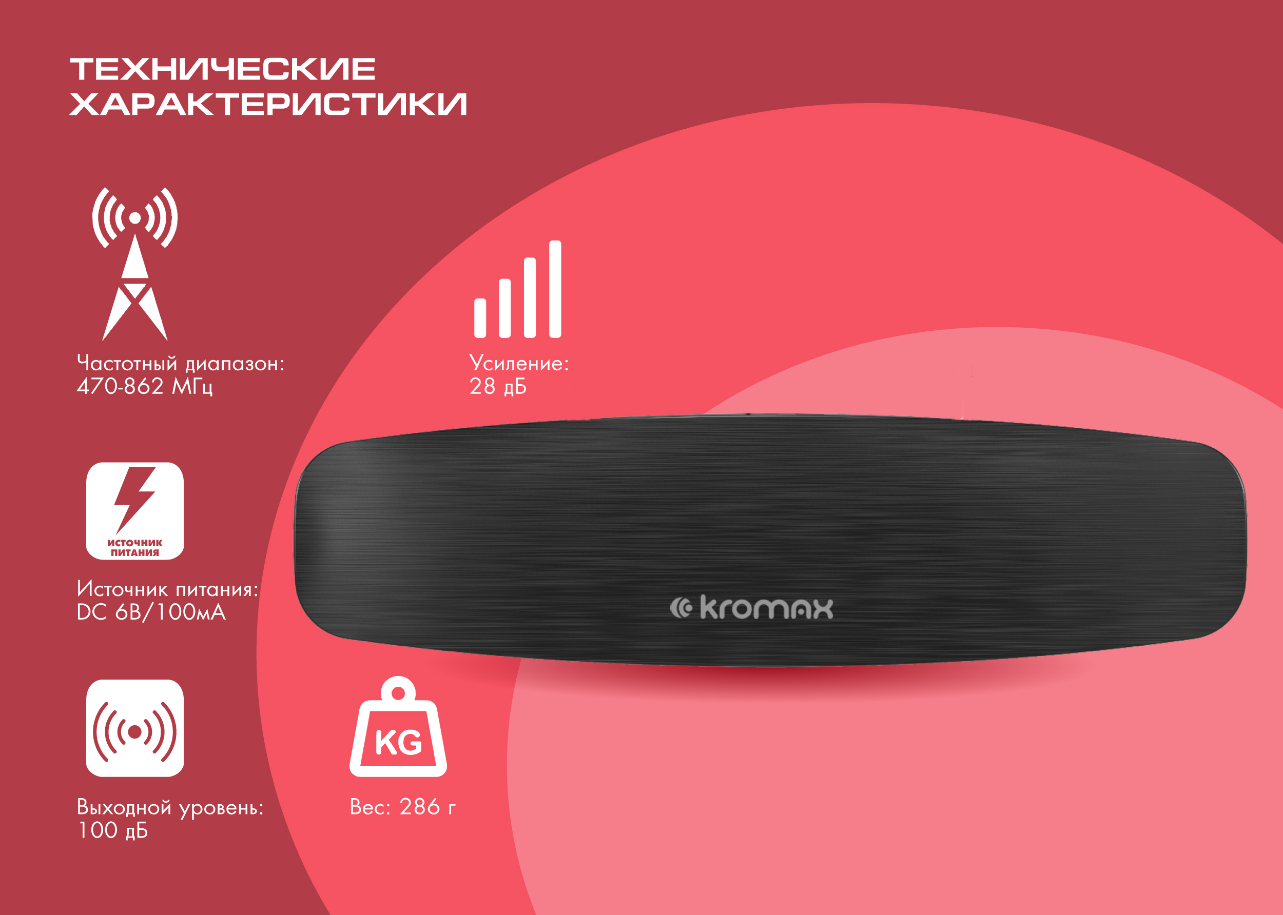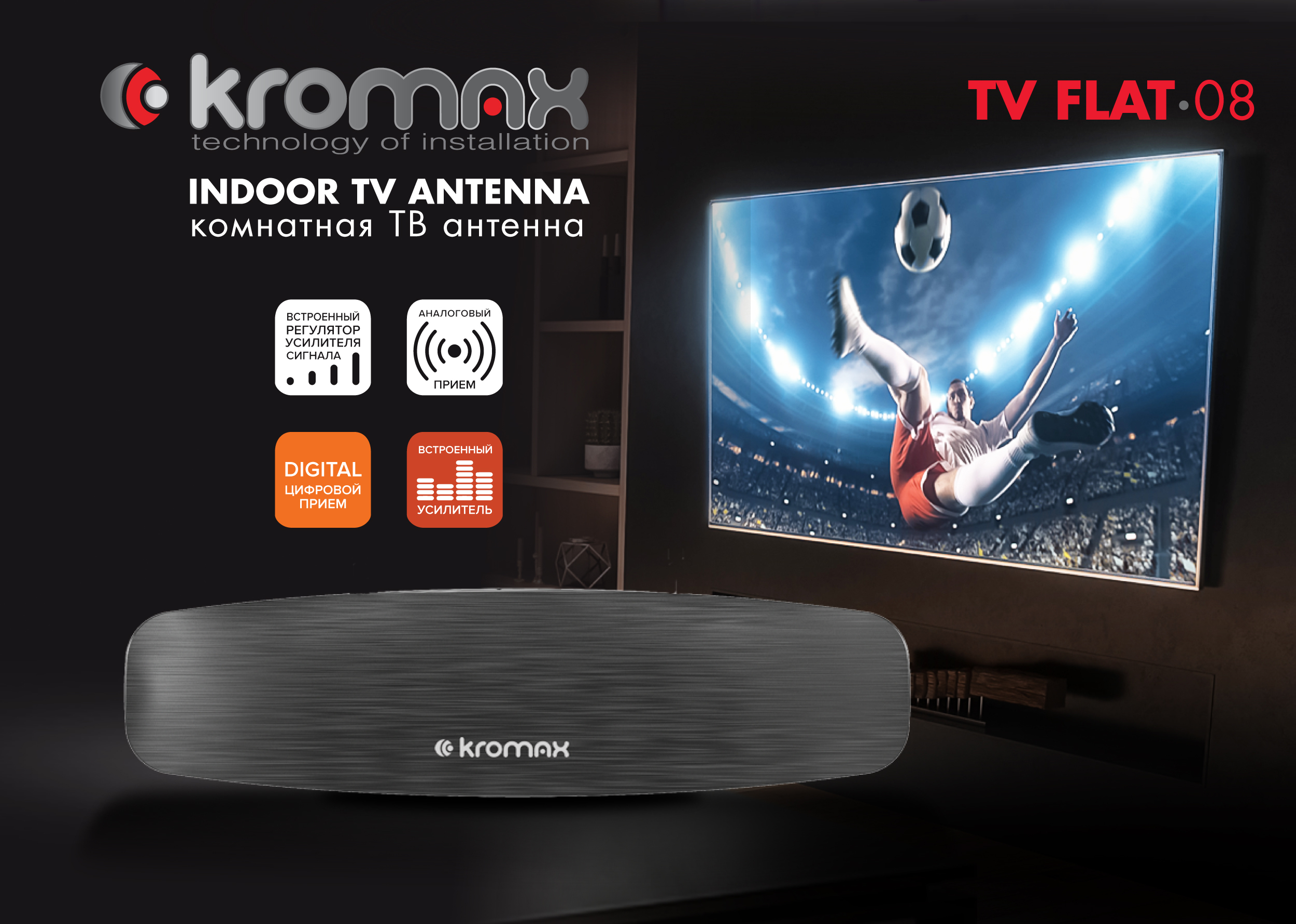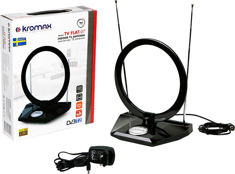 Комнатная антенна активная Kromax TV FLAT-07, поддержка DVB-T2